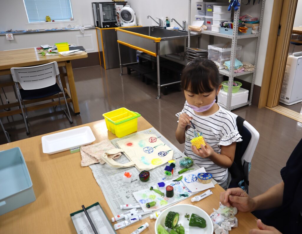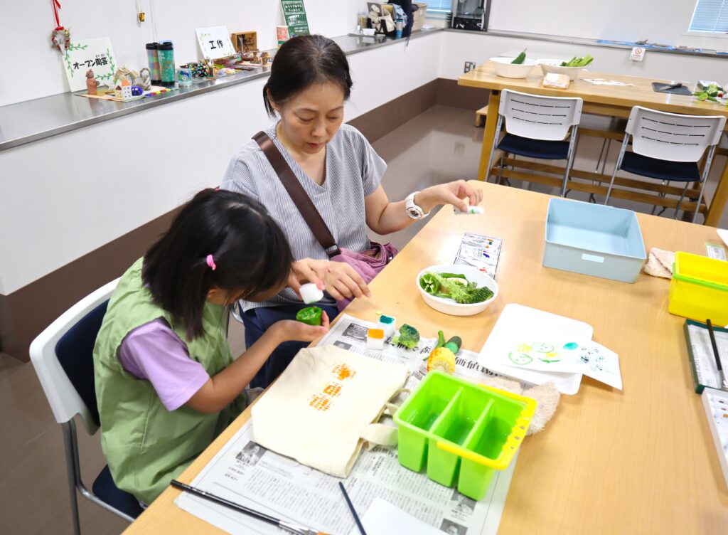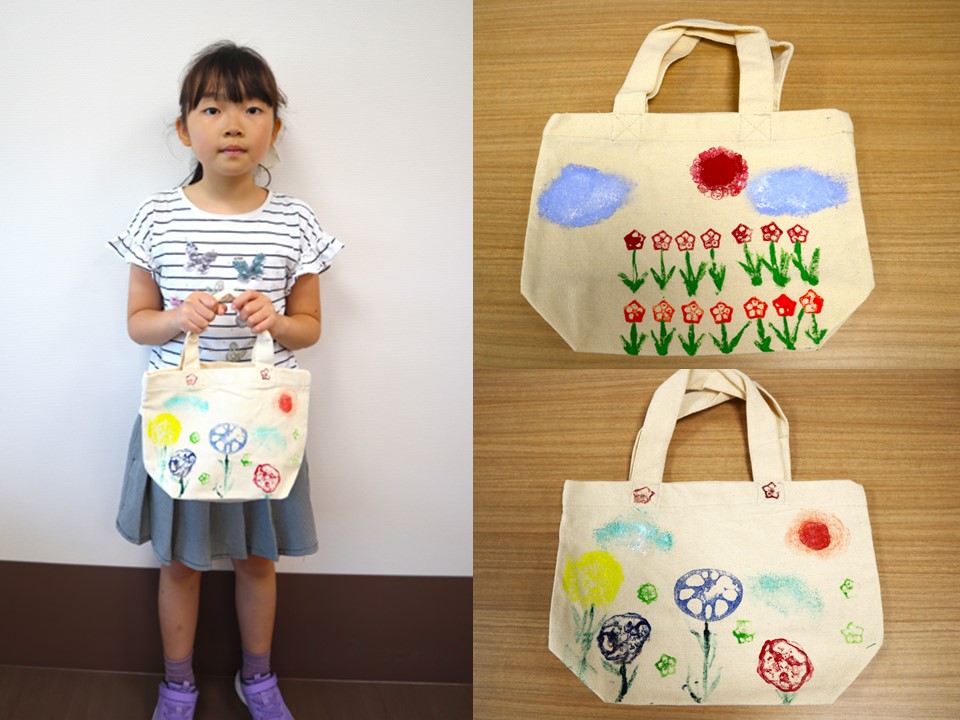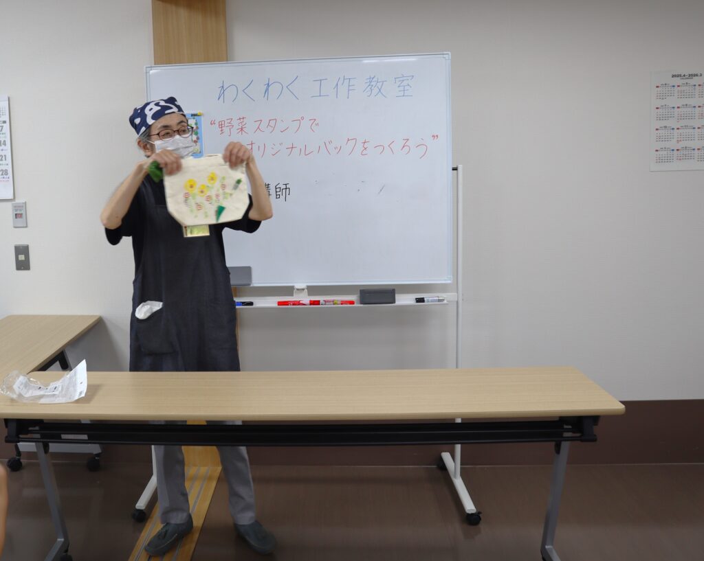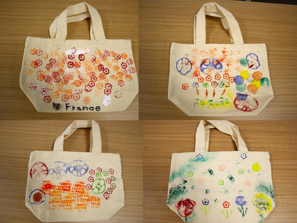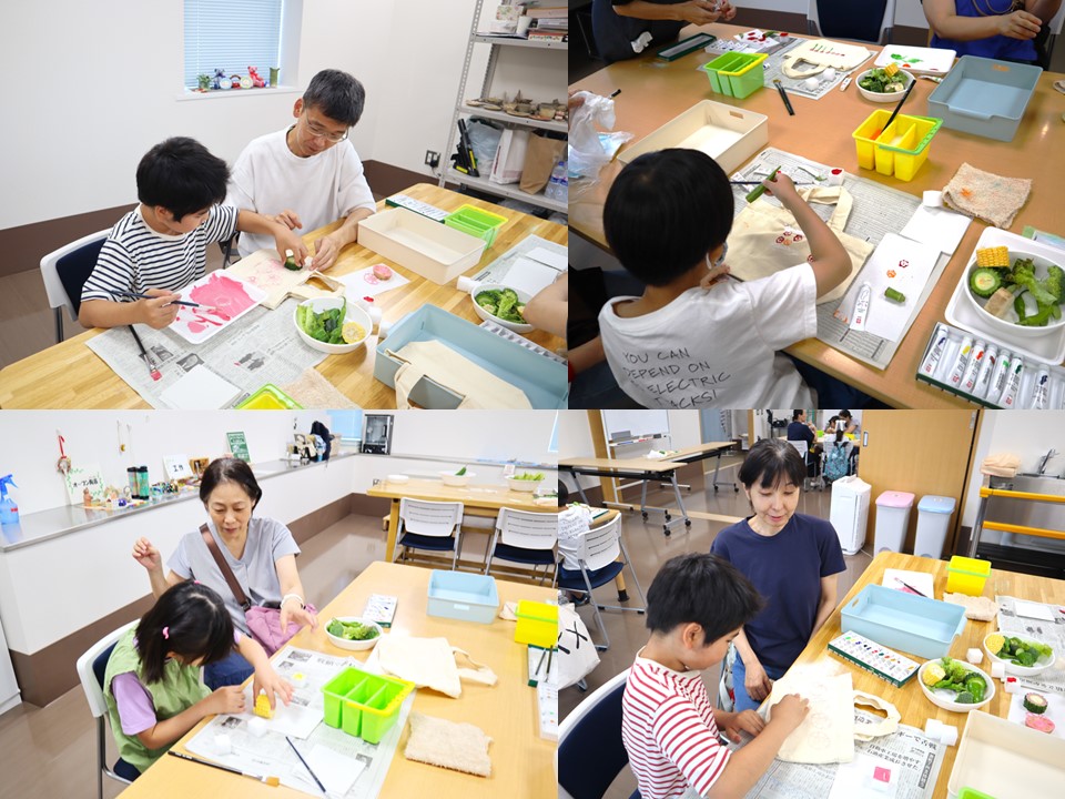 今月のテーマは『野菜スタンプでオリジナルバックをつくろう』でした。
