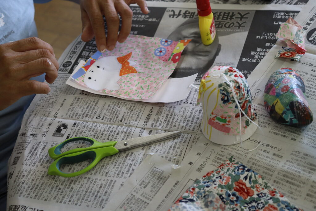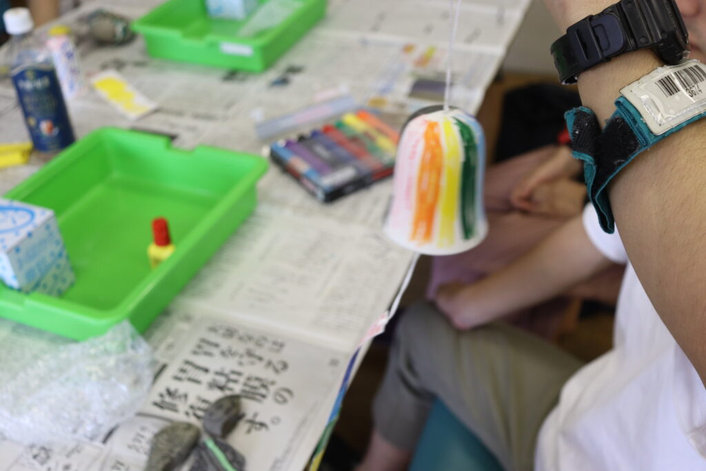 軽やかで涼し気な音色が工房に響いていました。風鈴づくりが終わった方は、ストーンアートに取り組みます。石に色を塗ったり・布を貼ったり個性あふれる作品が完成しました。
