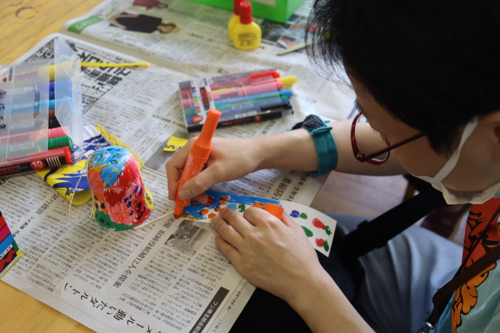 季節感のあるテーマで図工を楽しむ「図工の時間」。7月は、オリジナル風鈴づくりとストーンアートの2本立てで実施しました。席も満席になり、創作工房がとても賑わいました。