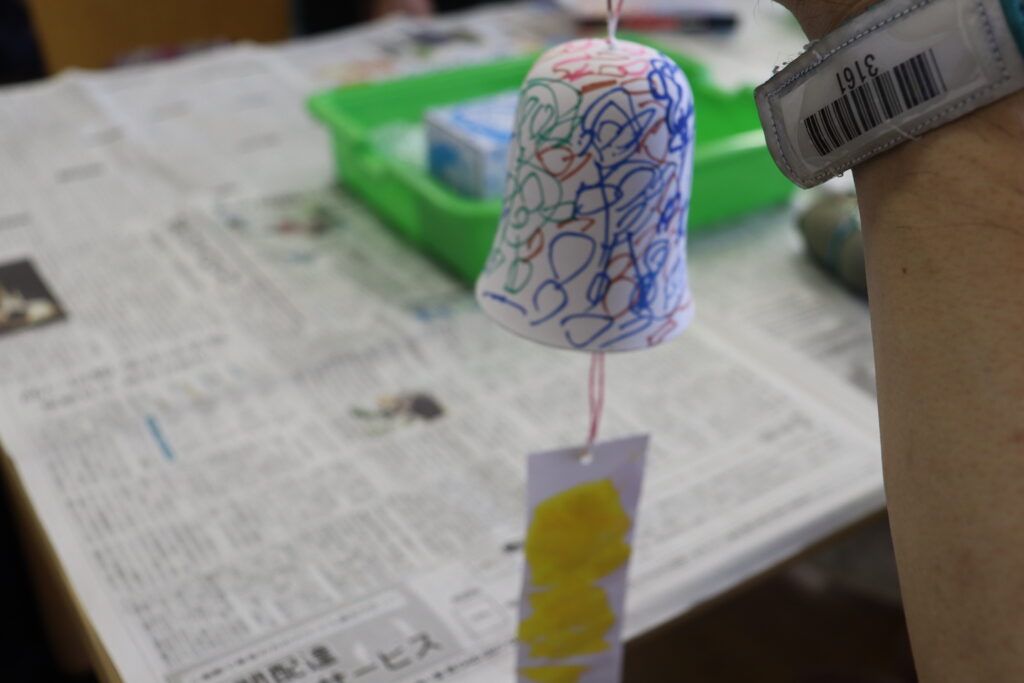 オリジナル風鈴づくりは、素焼きされた陶器の風鈴に、各自で色を塗ったり・絵を描いたりしながら、自分だけの風鈴を制作します。