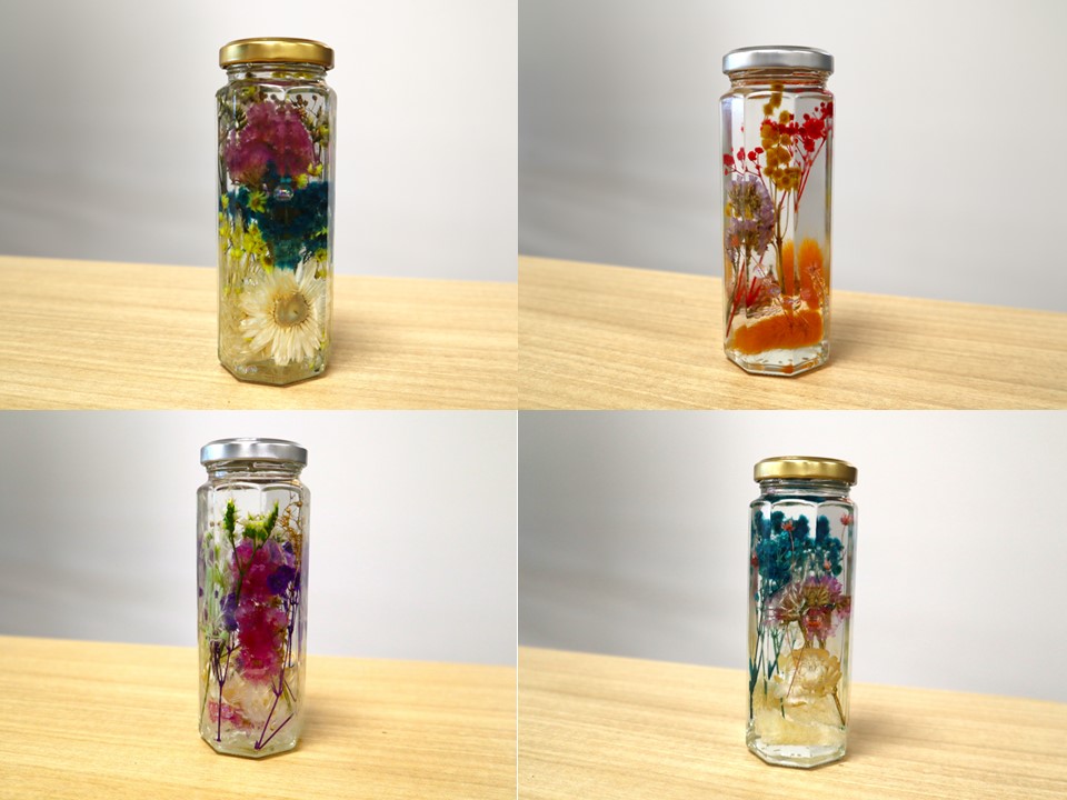 ハーバリウムは、ドライフラワーなどの花材をガラスの瓶に入れ、オイル浸けにしたインテリアアイテムです。