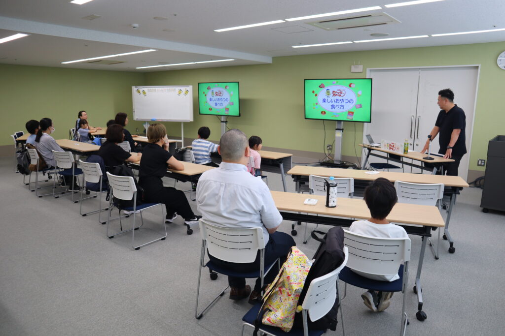 色んな種類のゲームを行い、一日に食べるお菓子の適正な量や時間について楽しく学ぶことができました!お菓子のお土産も付いていて、早速この後食べる~!と話していたお子さんたち。本日学んだ知識を活かして正しく楽しく食べてくださいね♪