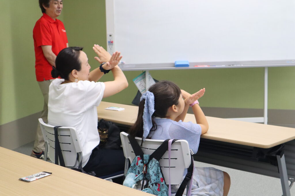 お菓子についての様々なクイズが出題され、保護者の方と一緒に挑戦!ちょっと難しいクイズにはギリギリまで迷いながらも一生懸命回答してくれていました!