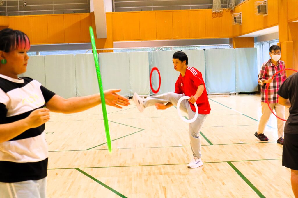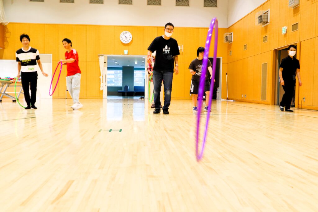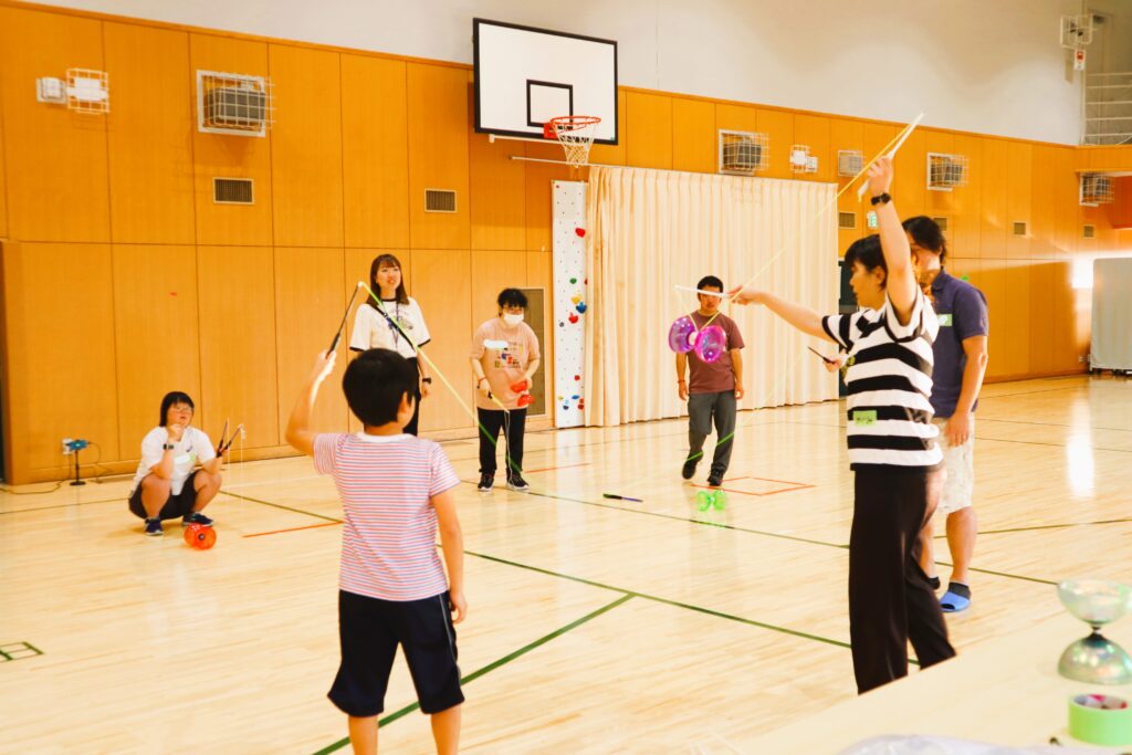 カラフルなディアボロが体育館のあちらこちらでくるくると回転する様子は、そばで見ているだけでも楽しい気持ちになります。