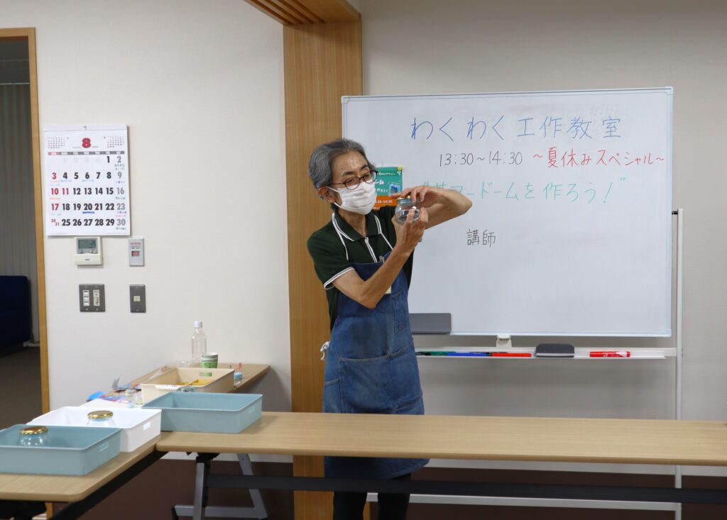 夏休みに、4歳児から中学生まで幅広く参加出来る【わくわく体験プログラム】の第6弾、『わくわく工作教室 サマードームを作ろう!』が開催されました。