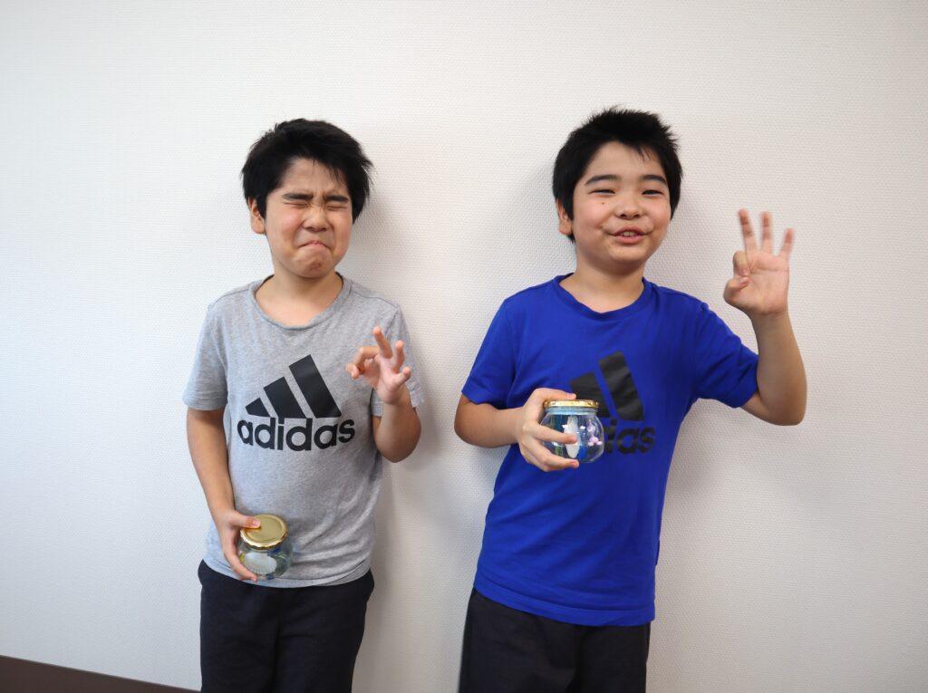 気泡が入ってしまわないよう、ふたを閉める最後の場面は先生が調整して、バッチリ素敵なスノードームが出来上がりマシタ♪