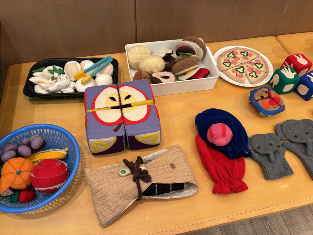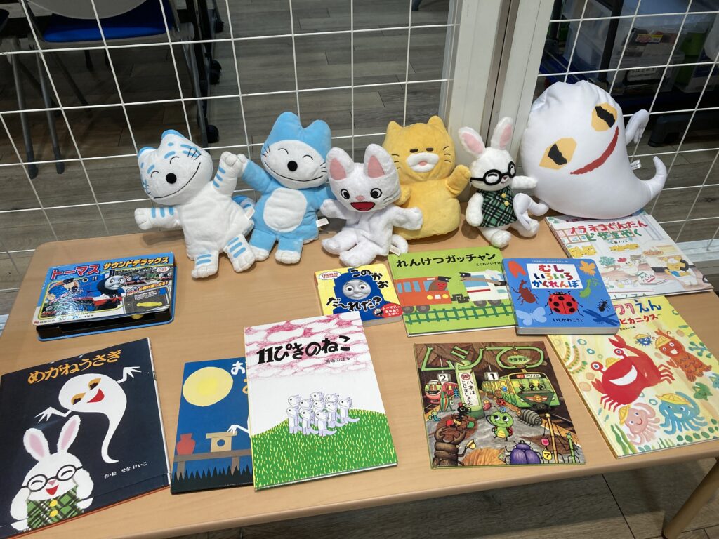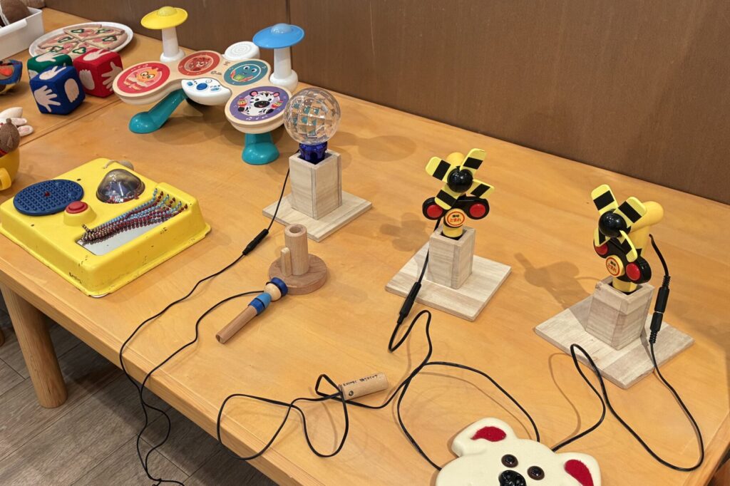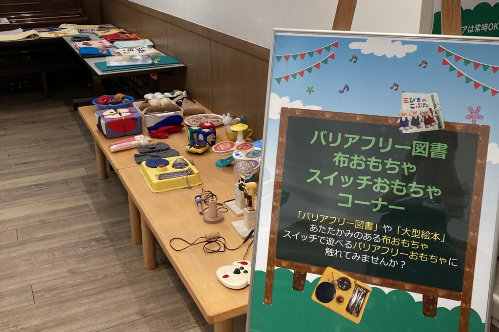 ・バリアフリー図書と布おもちゃ、スイッチを接続できるおもちゃの展示