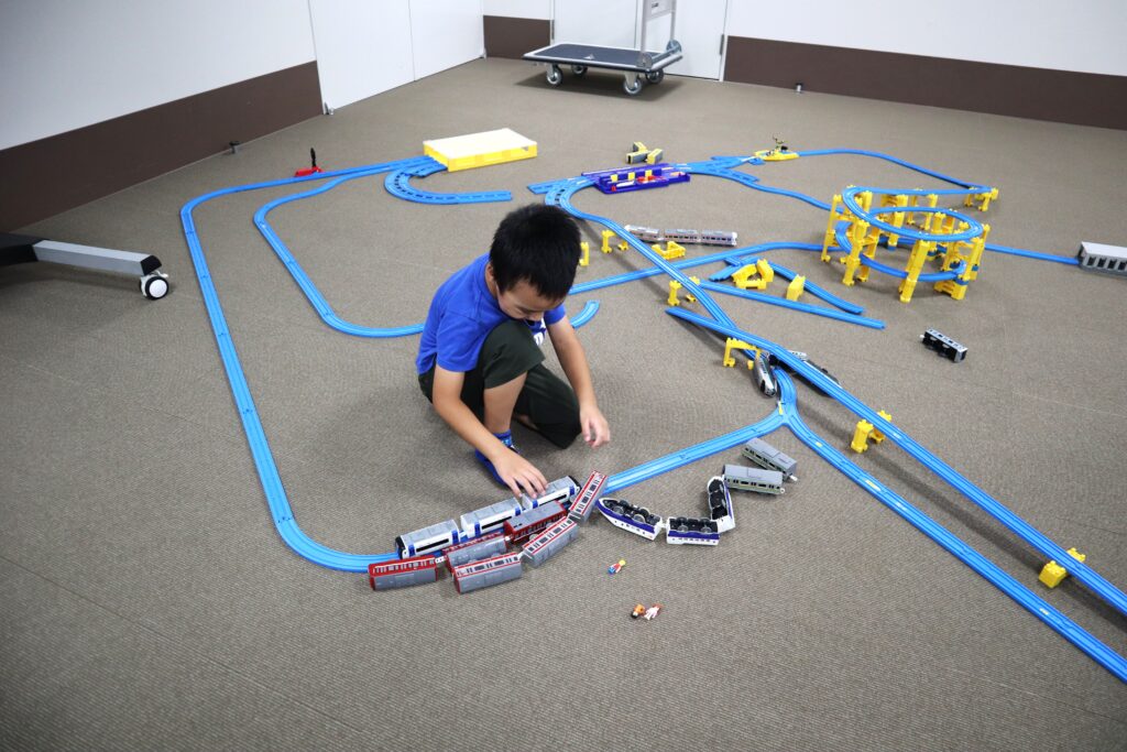 レールをどんどん広げて、自分で考えたレイアウトを作っていきます。