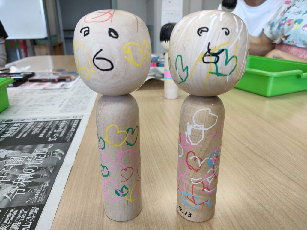 9月の図工の時間は、「こけしアート」。自由な発想でこけしに絵や模様を描いていきます。