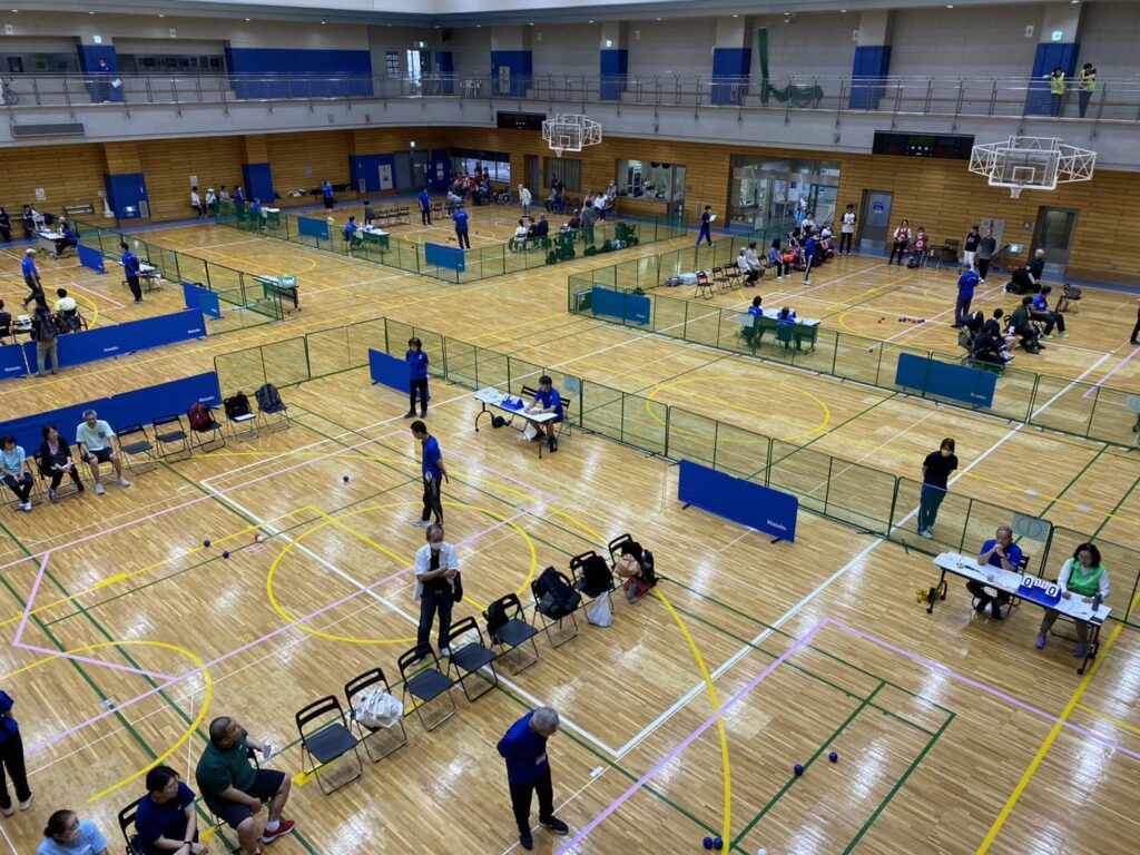日頃の練習の成果が発揮され、各コート熱いゲームが繰り広げられました。また、はじめてボッチャのイベントに出場する方や全国大会出場経験者、家族・施設の仲間同士まで、普段は関わることがない方たちが交流する場にもなりました。
