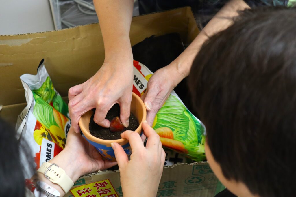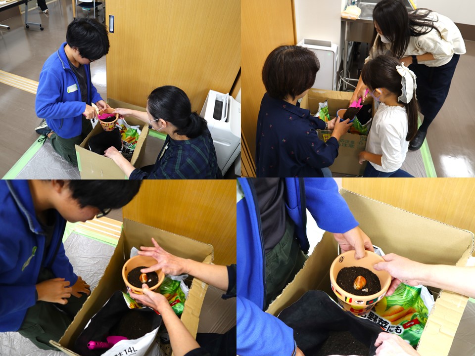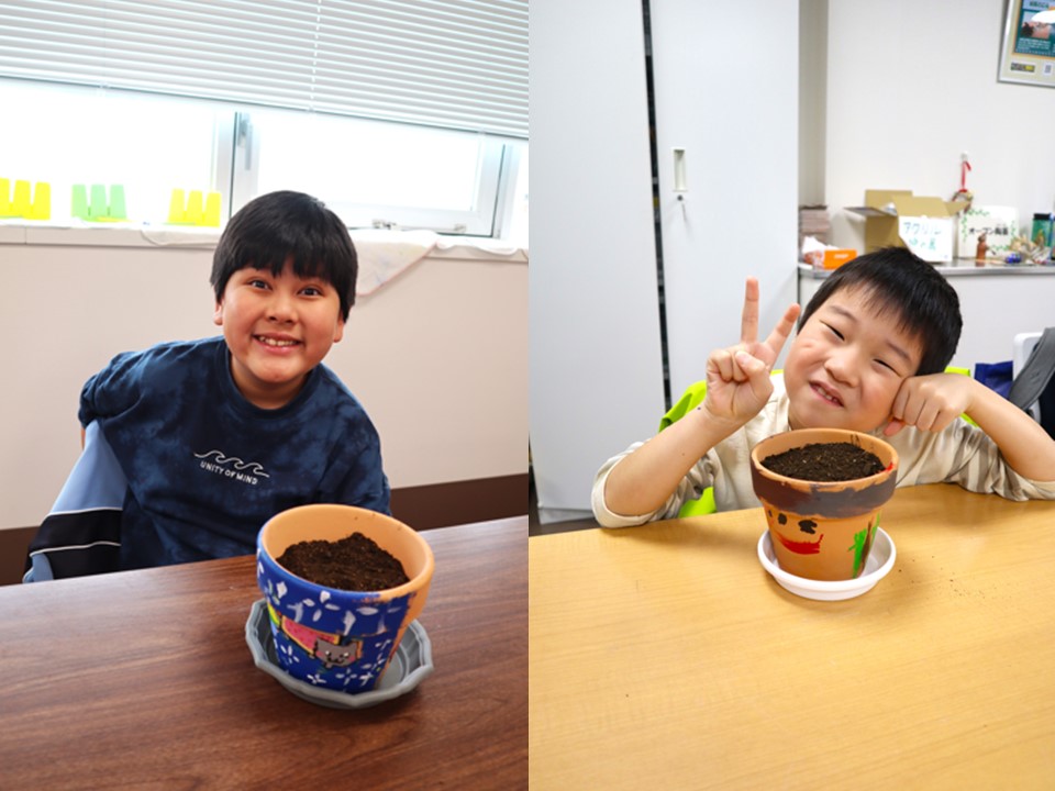 無地の素焼きの植木鉢に思い思いの絵を描いて、チューリップの球根を植えて、来年の春に花が咲くのを楽しむという2倍楽しめる内容だったので、応募が多数ありました。