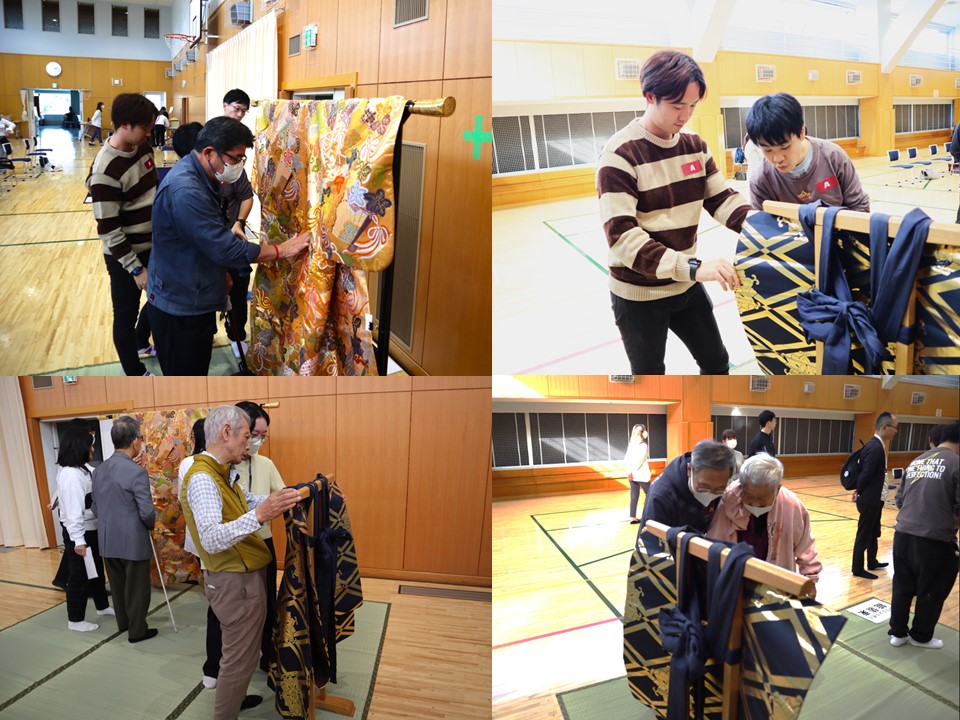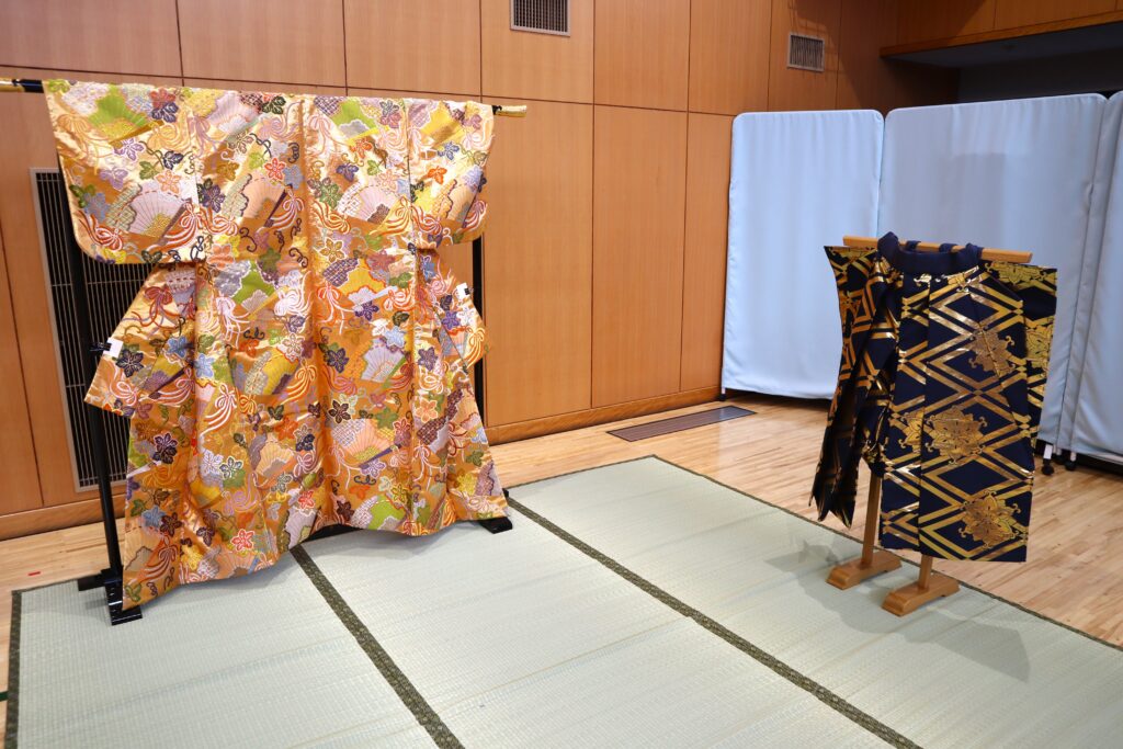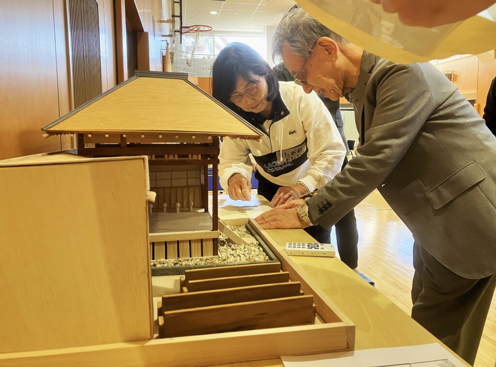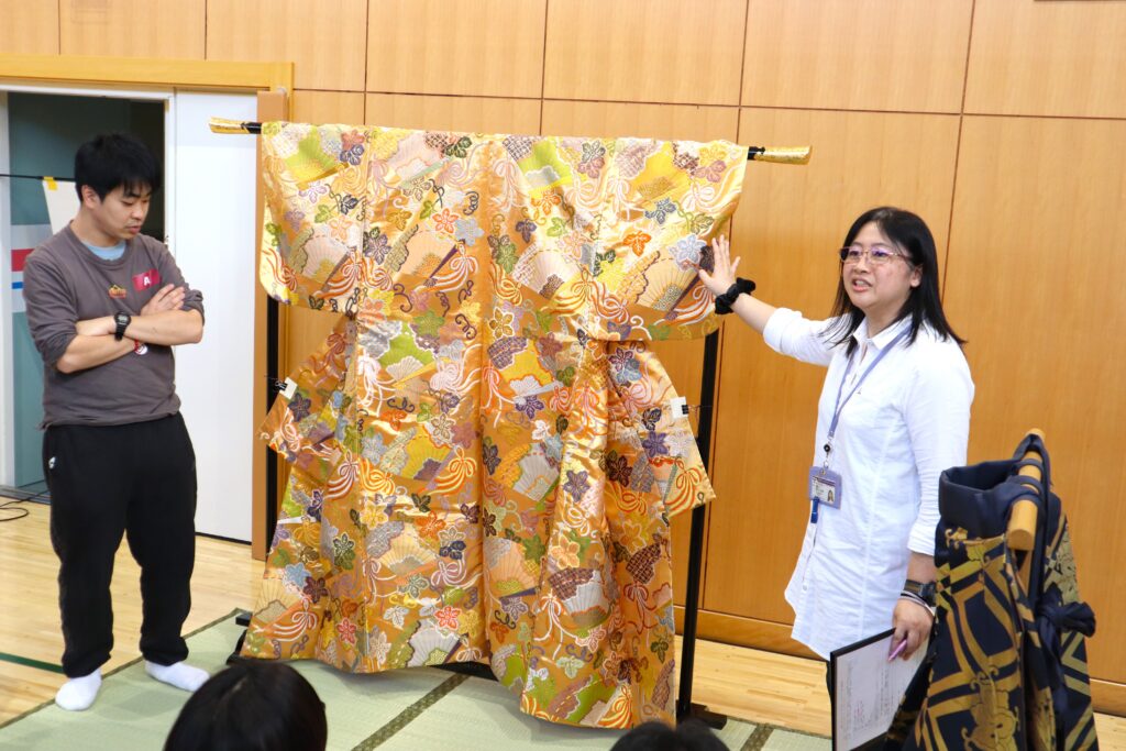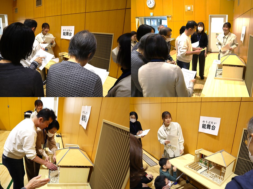 AグループとBグループに分かれ、能舞台の模型と能装束を見ながら説明を聞いて、実際に触れてみました。