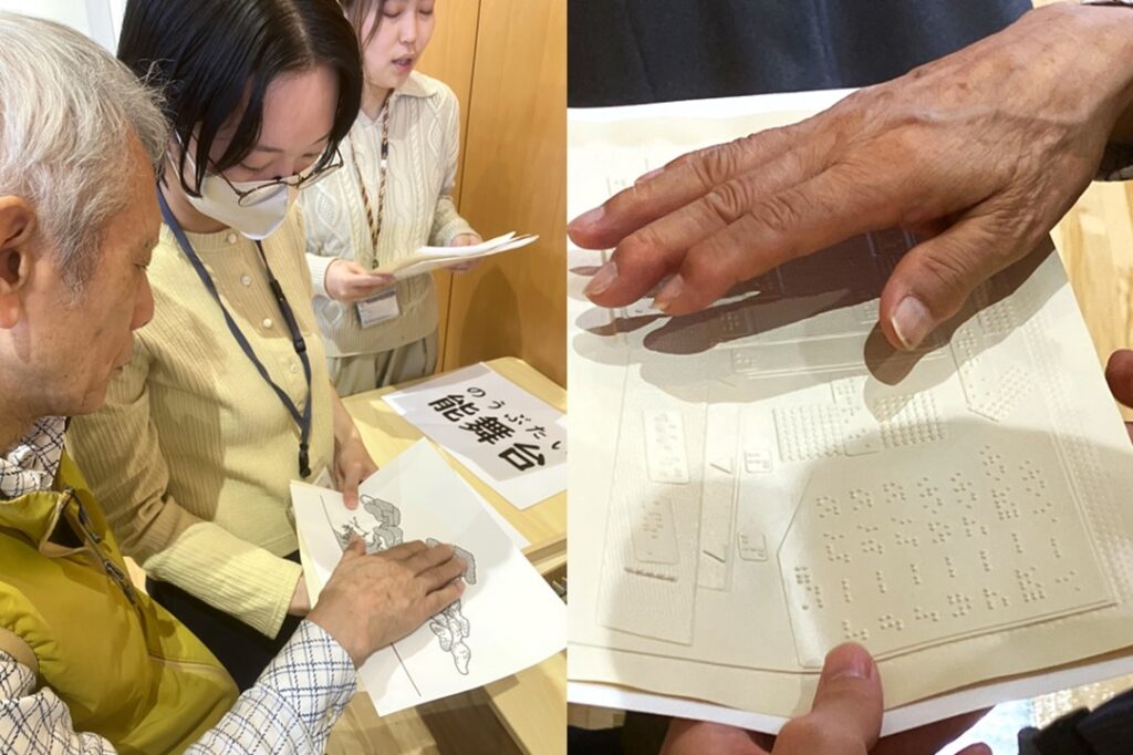視覚障害の方には、点字や立体コピーを用いての説明をしました。
