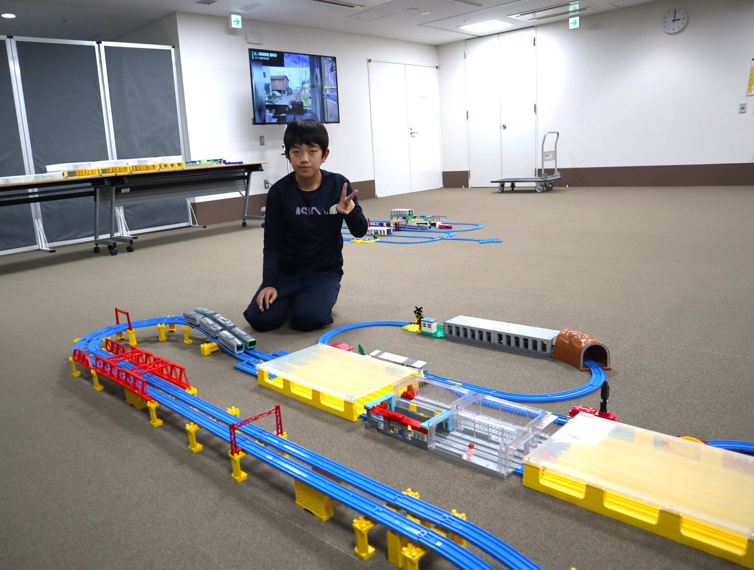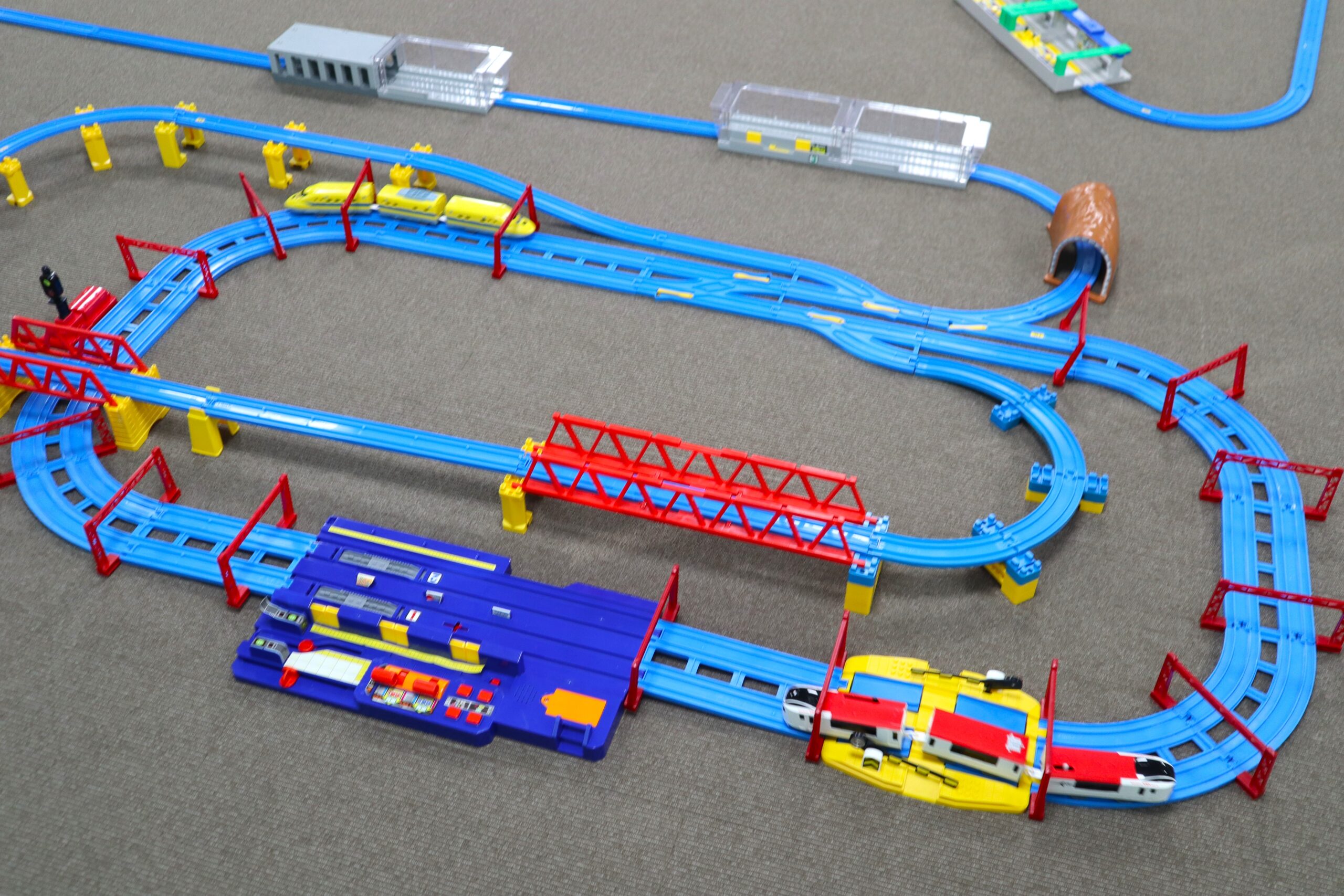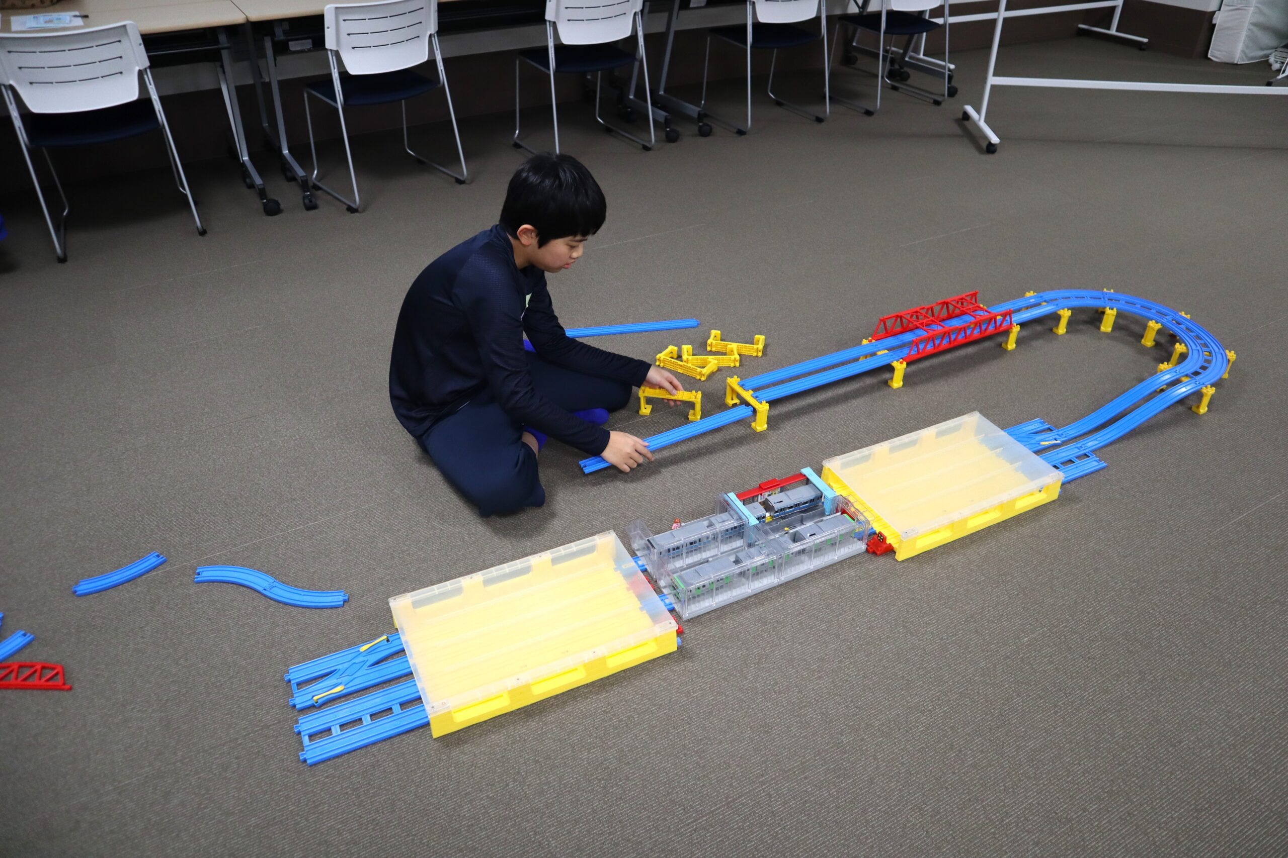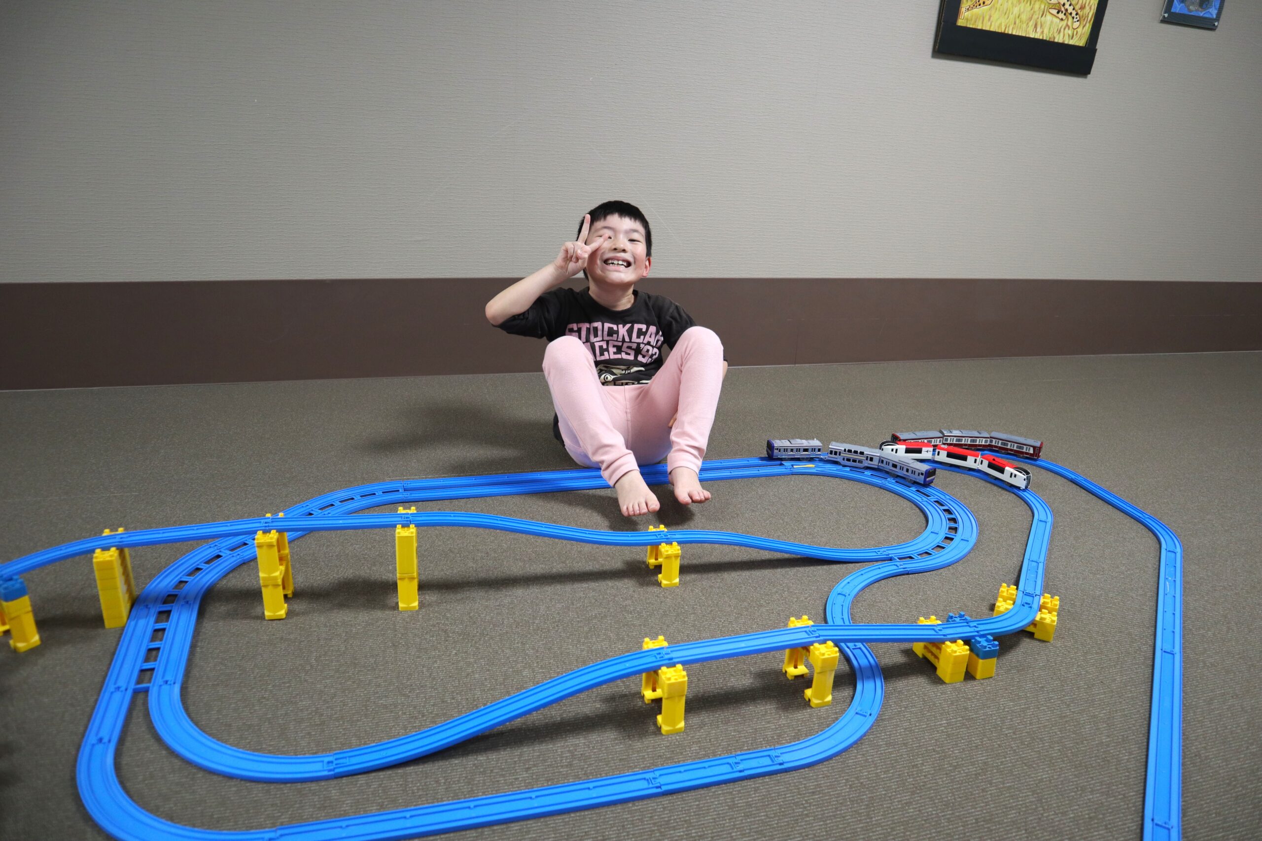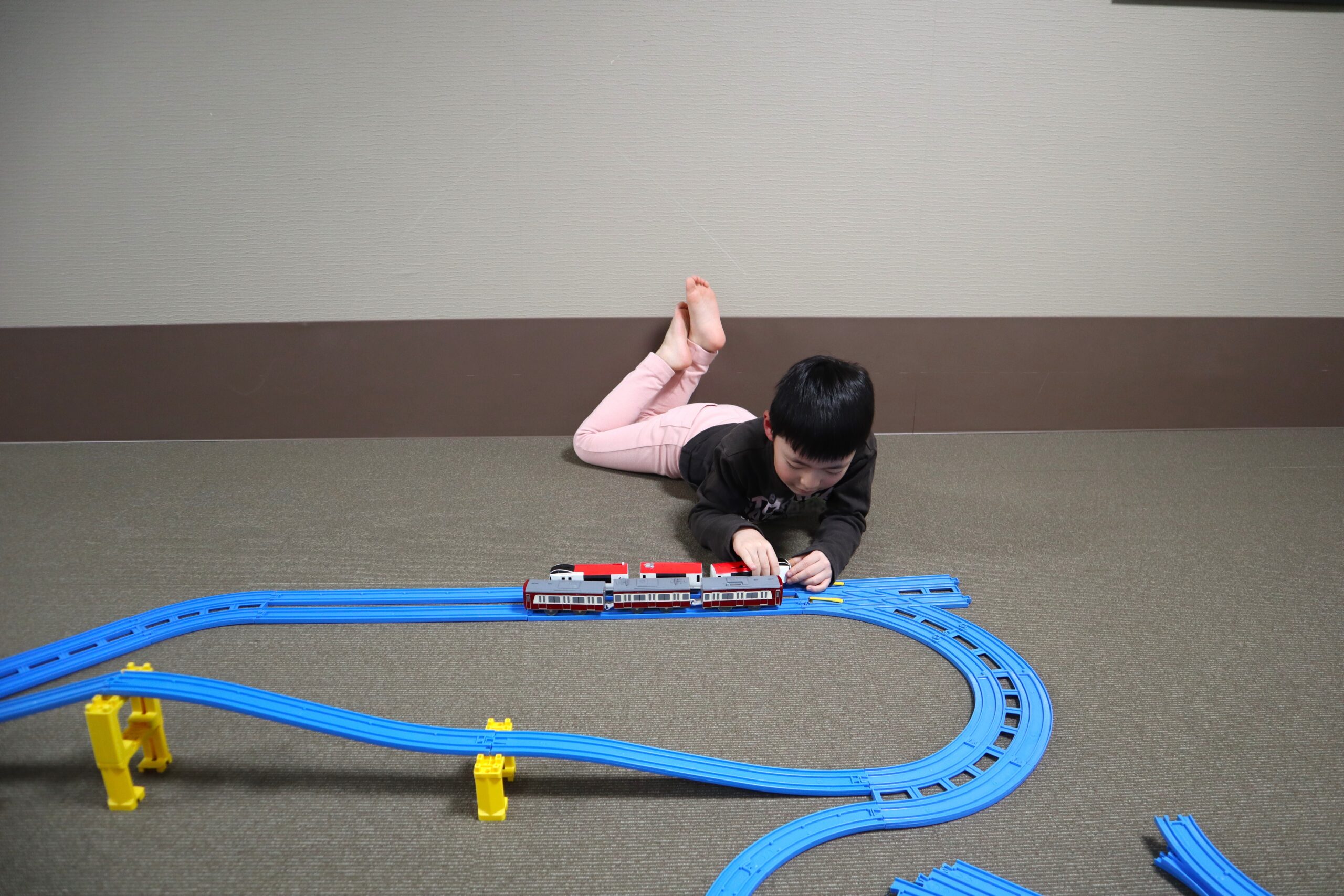ラポール上大岡8階・多目的室の広い空間を使って、自由にプラレールを組み立てて、2時間思いっきり遊ぶことが出来る「プラレールであそぼう!」