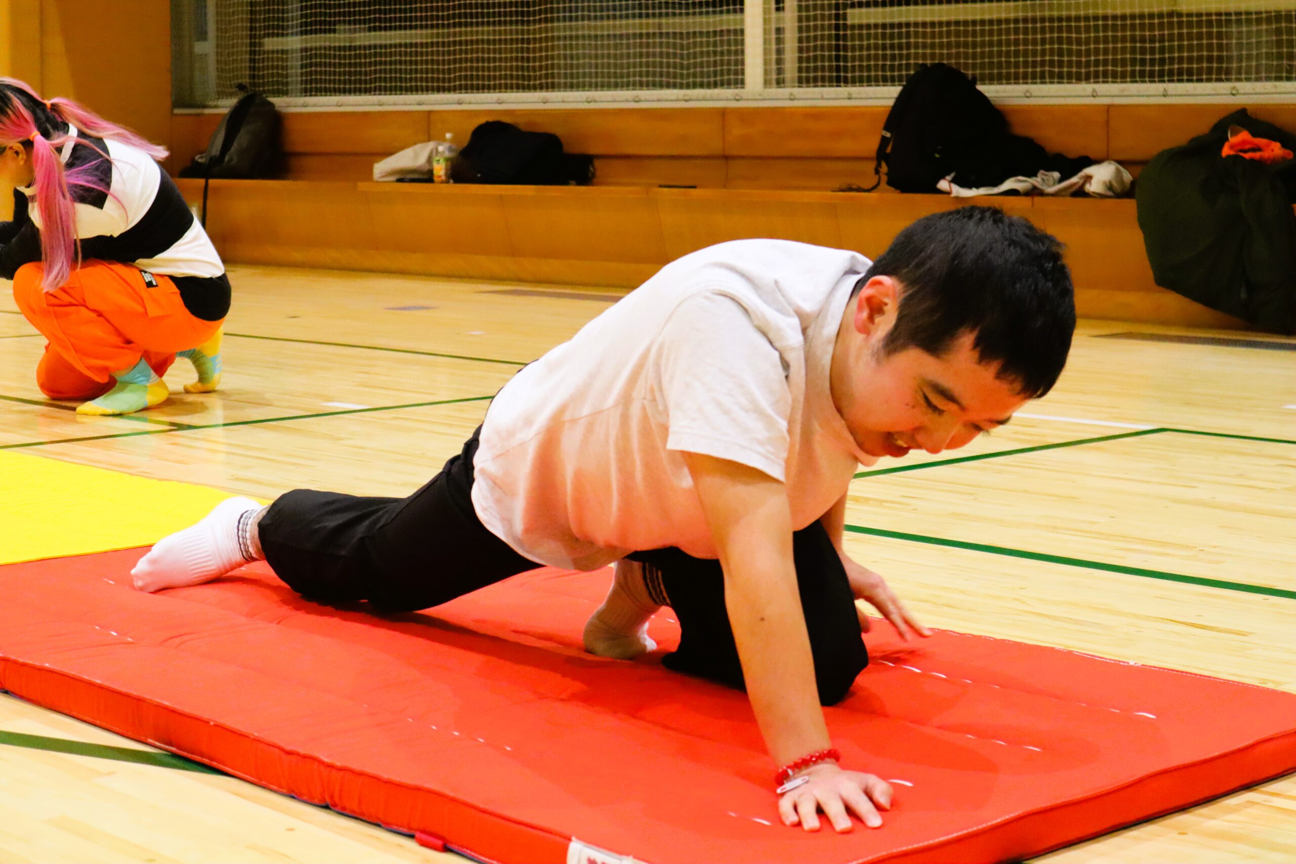 参加者の皆さんは、マットの上でのびのびと体を動かして、パフォーマンスに必要な柔軟性とバランス力を鍛えました。