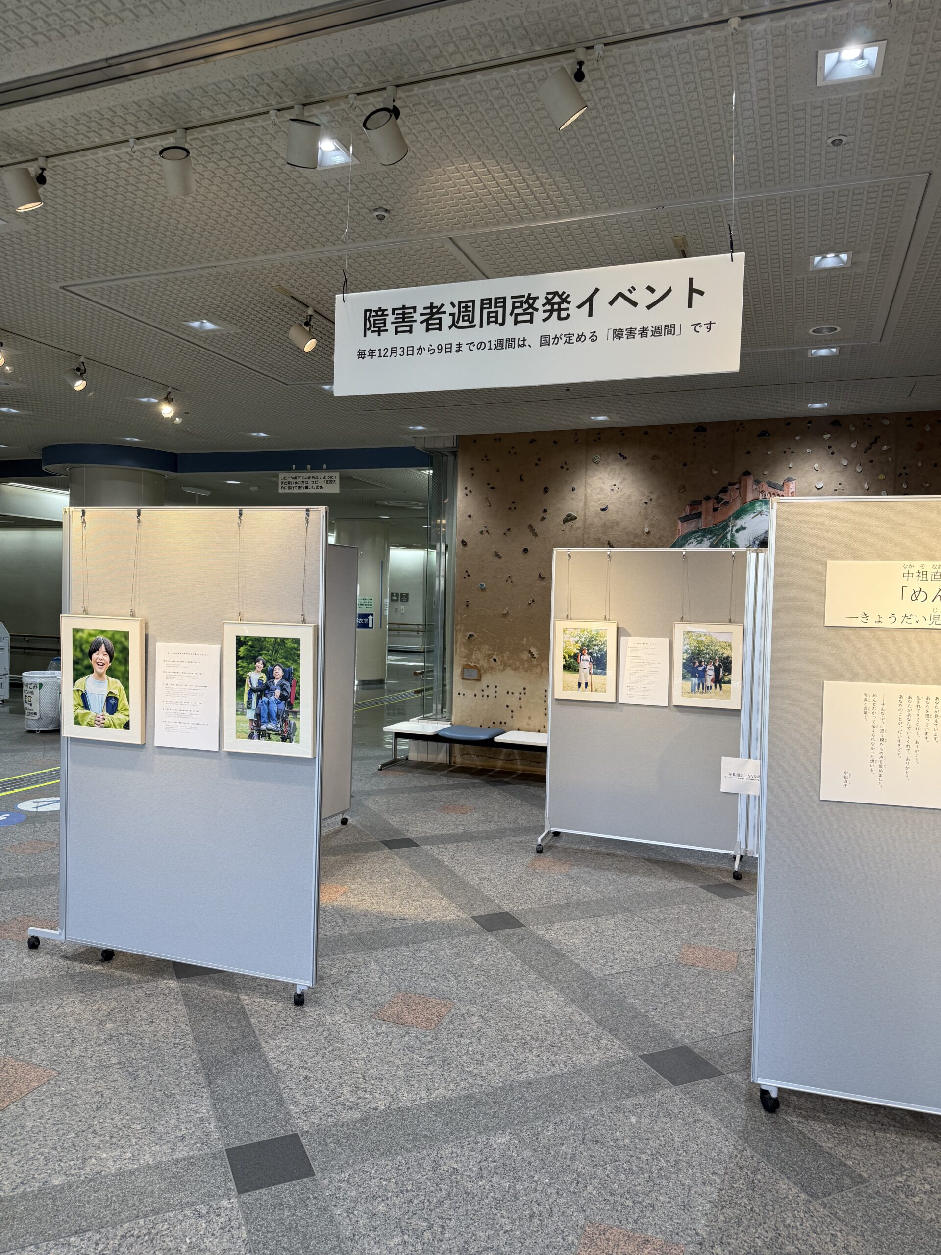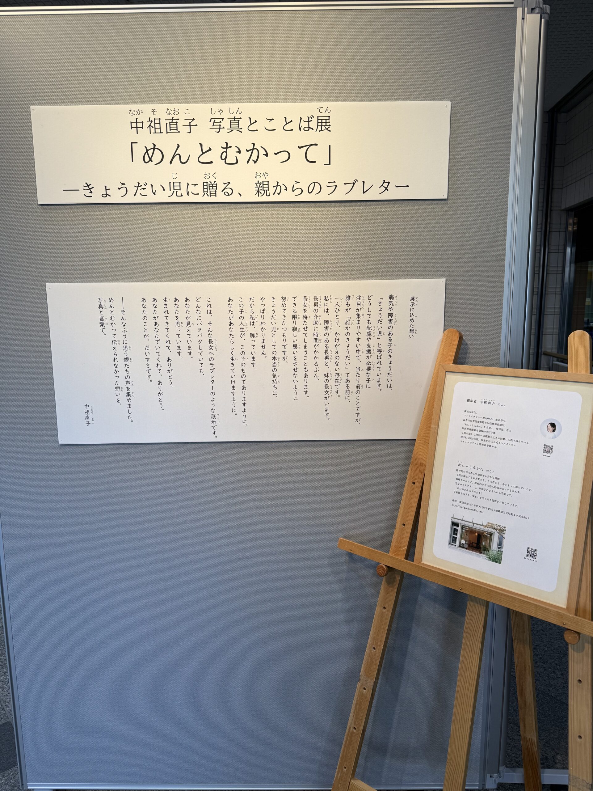 障害者週間に合わせて、12月2日(火)~12月12日(金)に中祖直子 写真とことば展「めんとむかって」―きょうだい児に贈る、親からのラブレターを横浜ラポールロビーにて開催しました。
