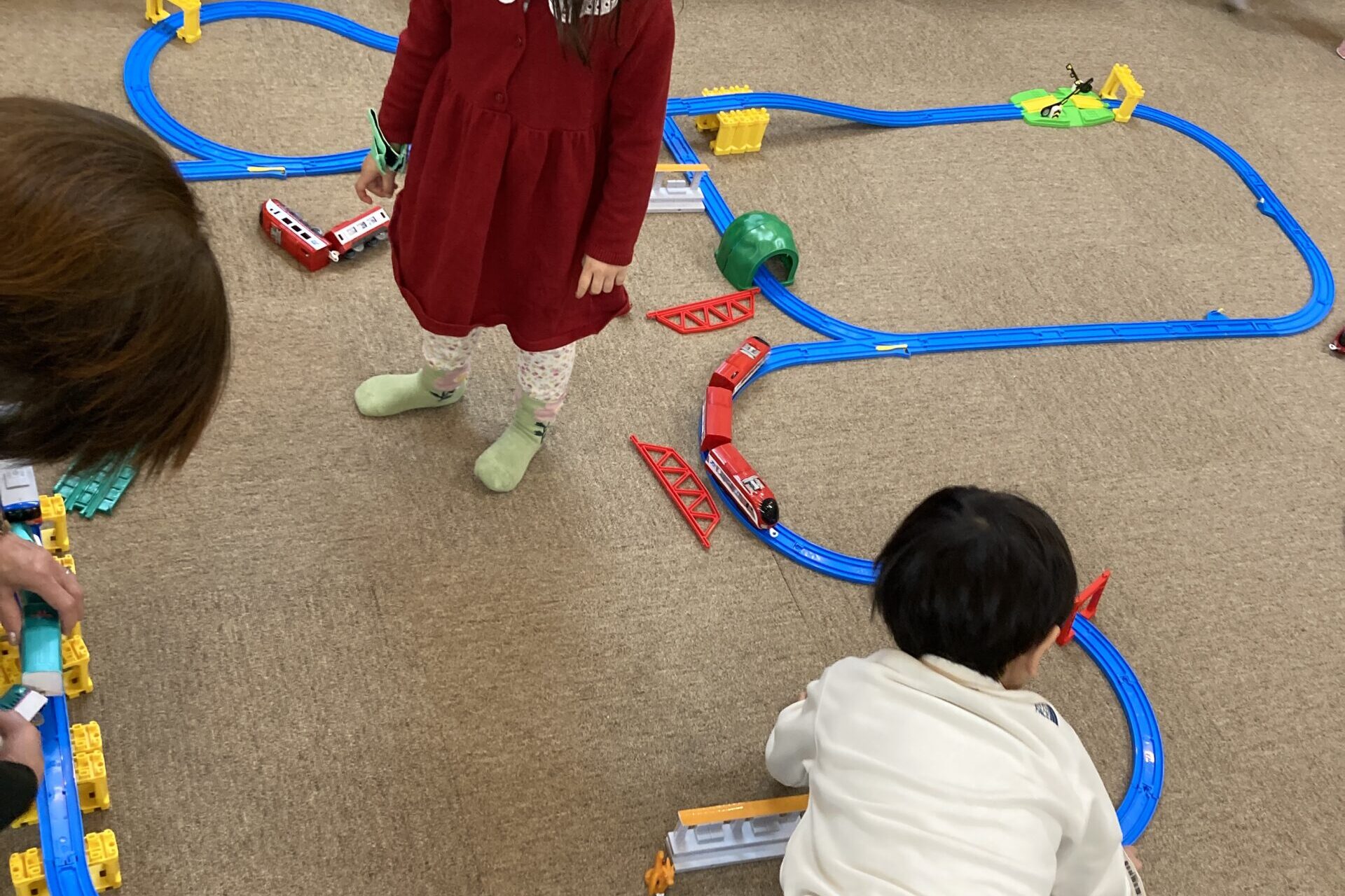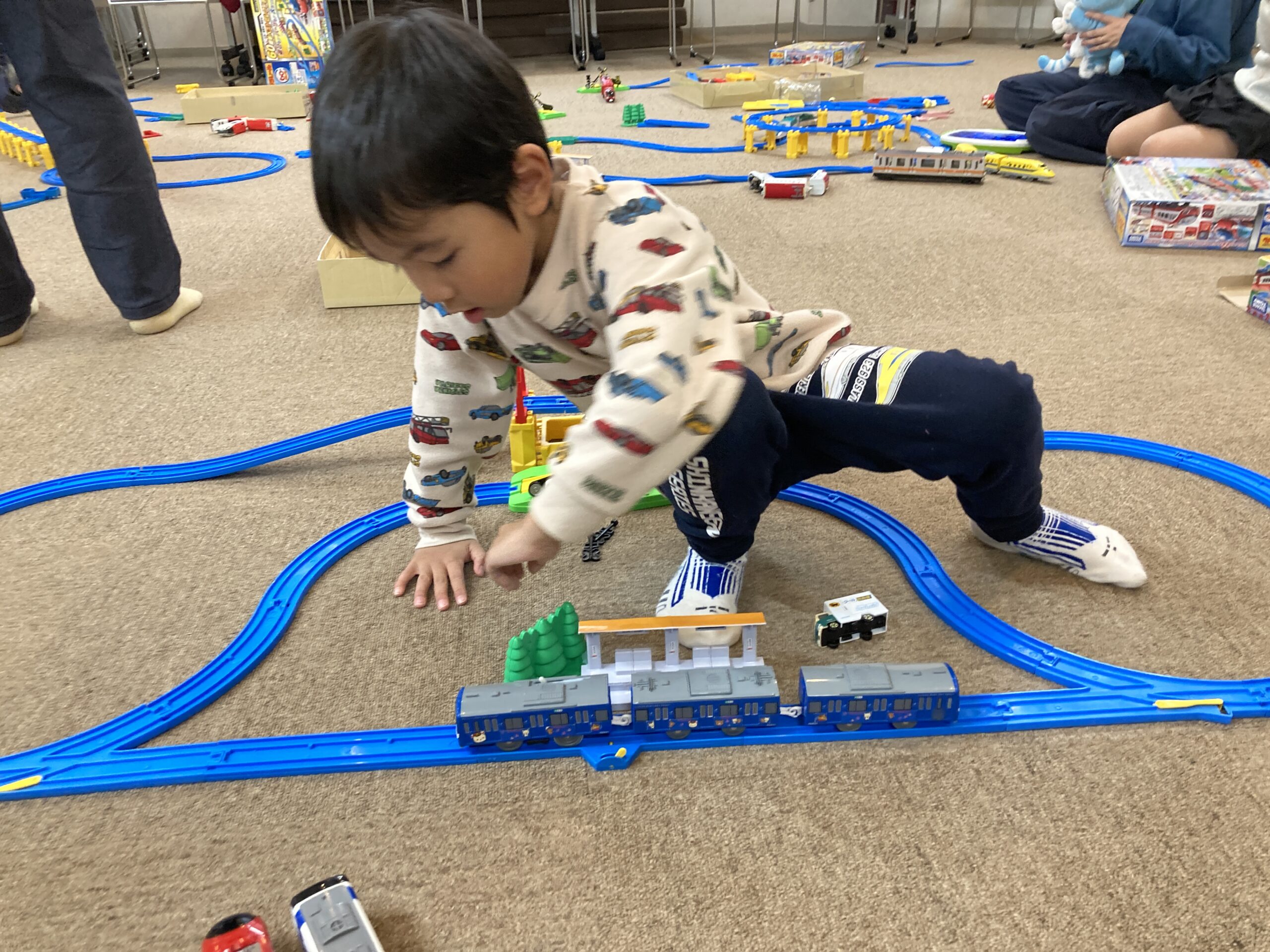 まだプラレールには興味がないけれど、家族で一緒に遊びたいというご家族のために、ミニおもちゃコーナーも設け、小さなごきょうだいから保護者の方まで、安心して過ごせる2時間です!