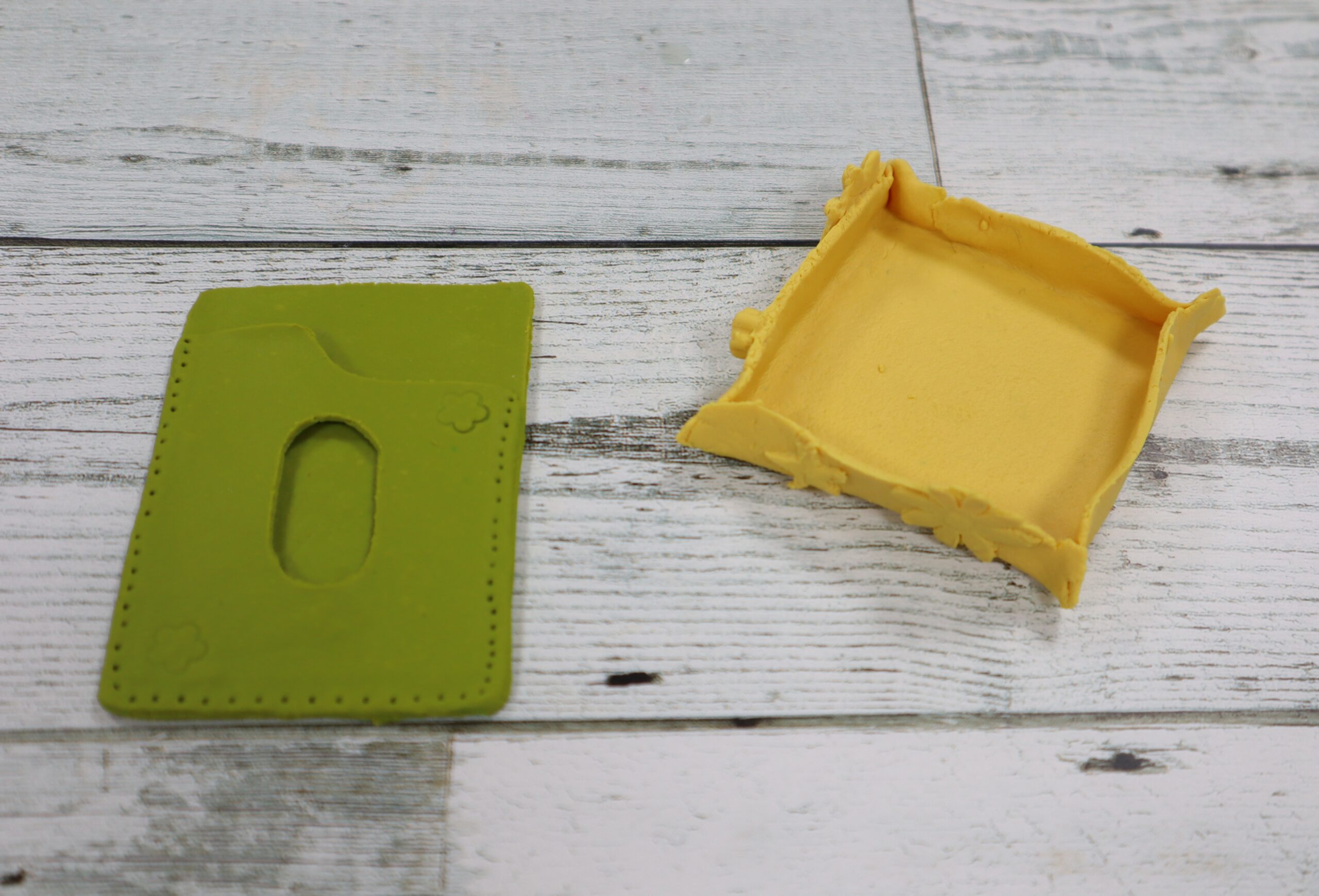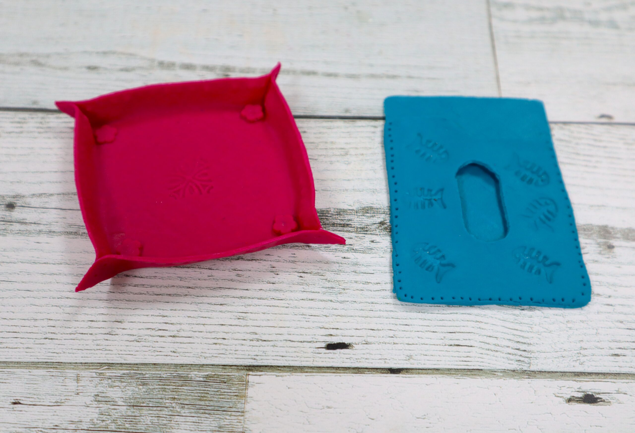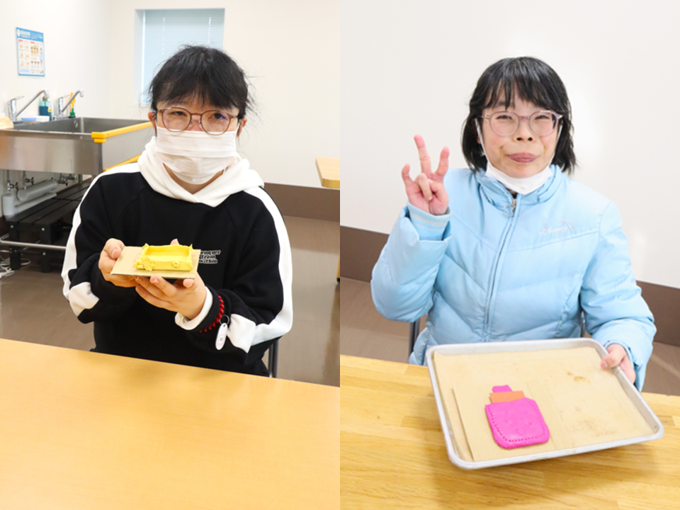 焼くとレザーのように変化する不思議な粘土を使って、パスケースや小物入れ、小銭入れなどを作りました。