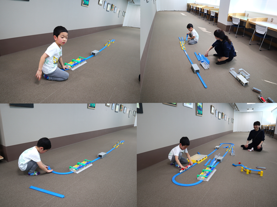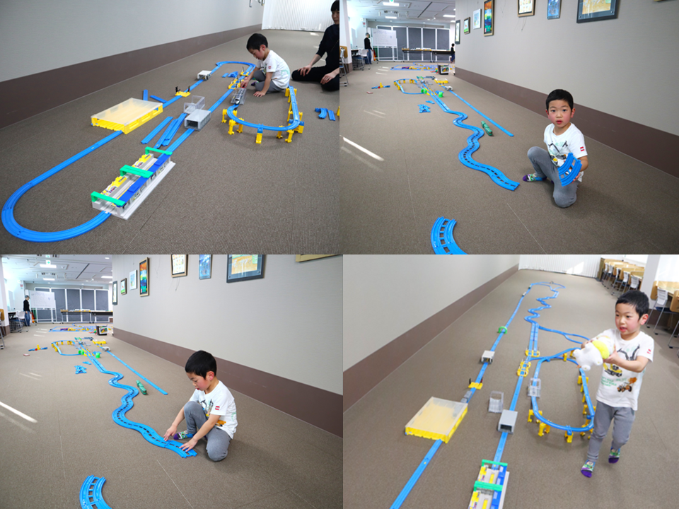 沢山のプラレールの車両や様々な情景部品、レール部品があるので、一人であれこれ考えて 組み立てて楽しんでいるお子さんや、親子で一緒にレールを組み立てて、ご自分達の世界を広げているご家族もいらっしゃいました。