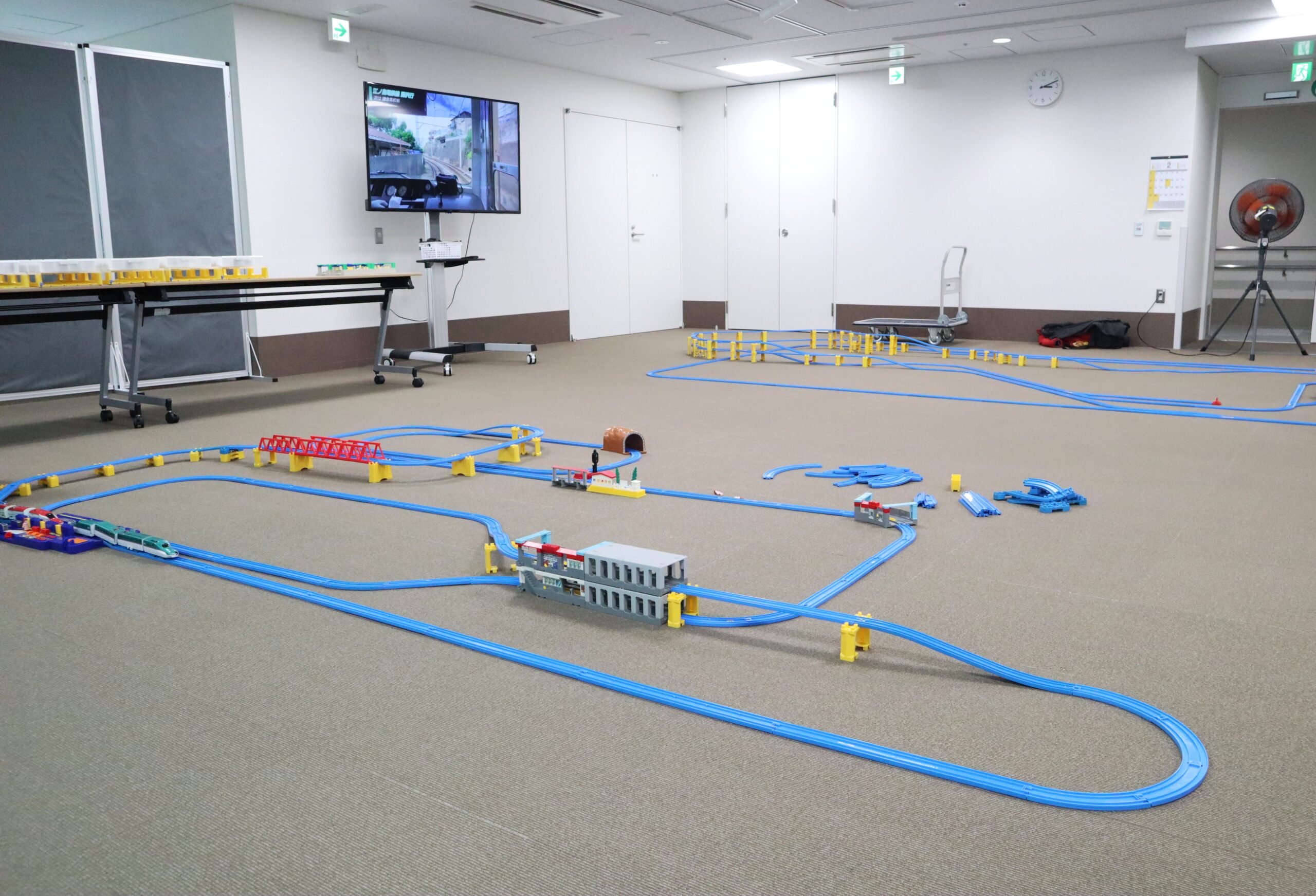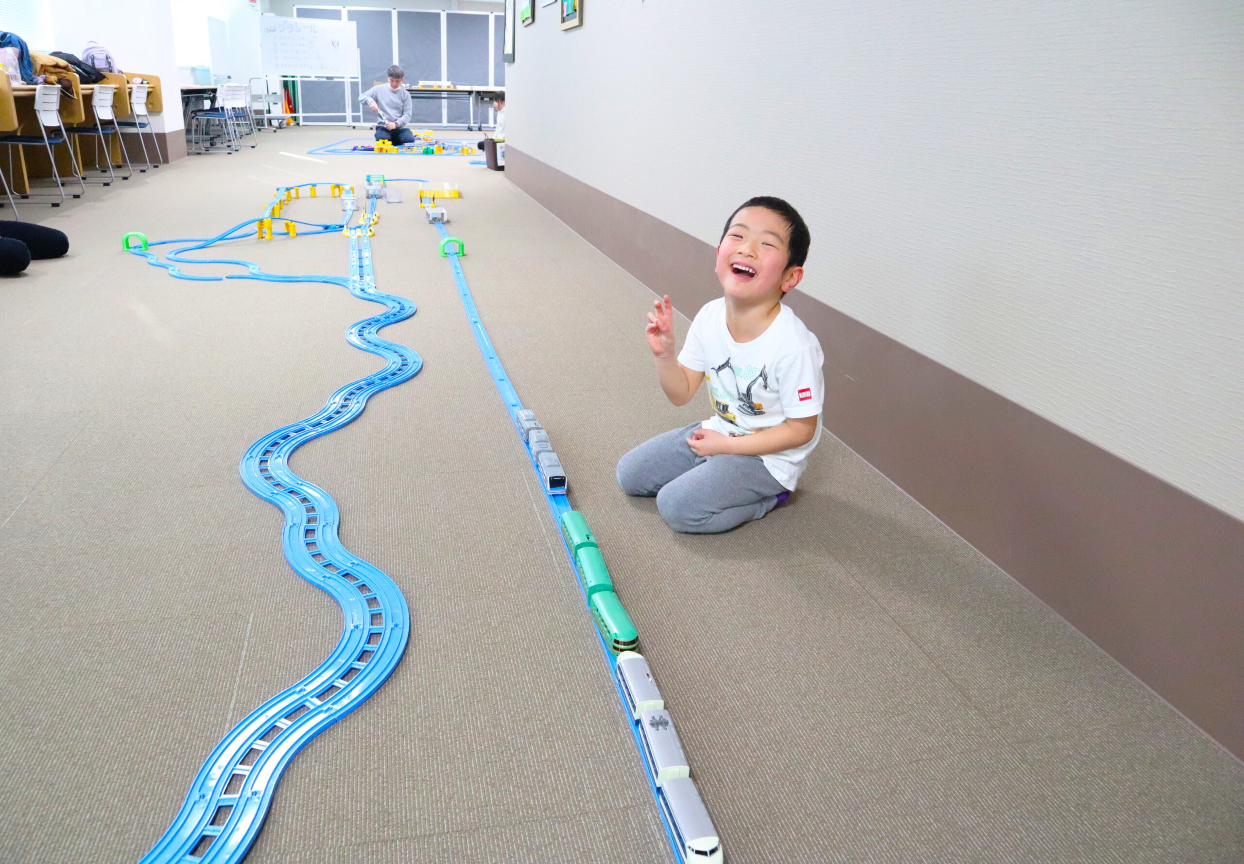 ラポール上大岡8階・多目的室の広い空間を使って、自由にプラレールを組み立てて、2時間思いっきり遊ぶことが出来る「プラレールであそぼう!」