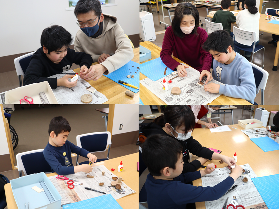 木の家の土台になる部分や飾りなど各自好きなパーツを選びました。