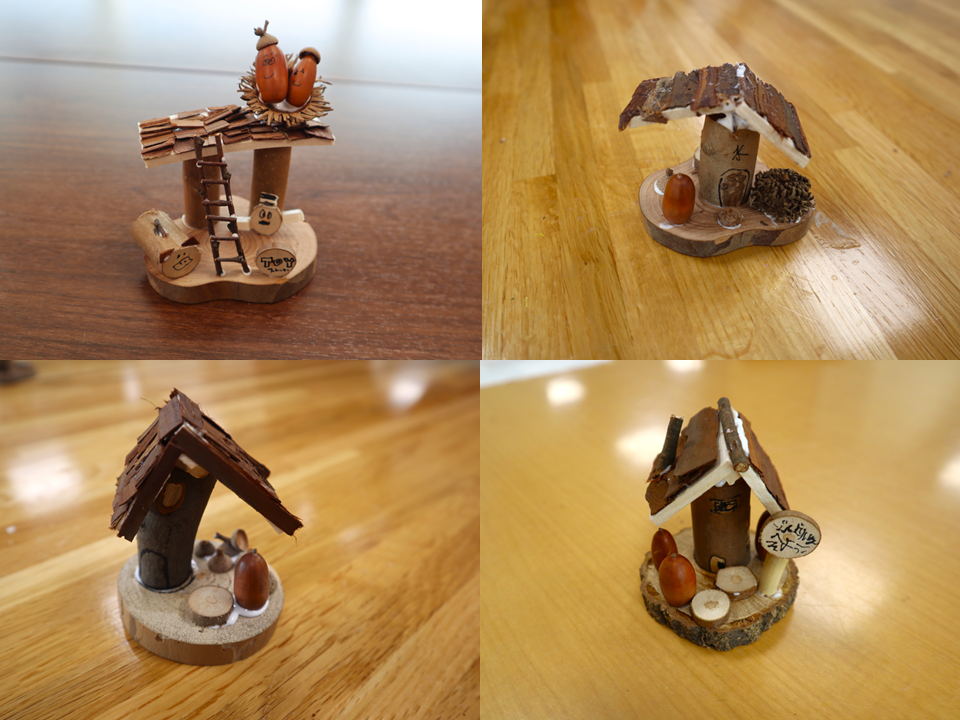 参加者各々工夫した素敵な木の家が完成しました!!
