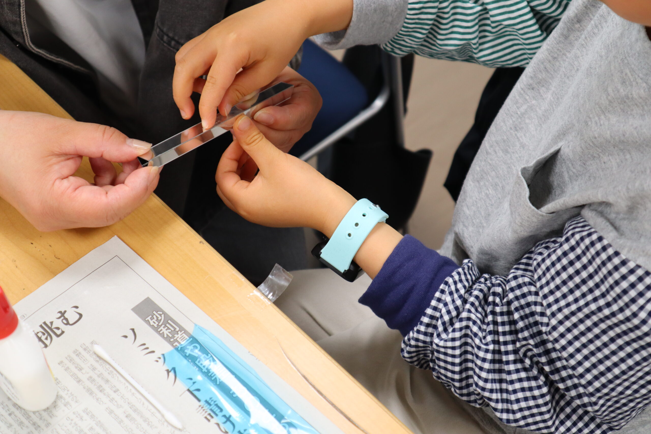 キラキラ反射させる鏡を万華鏡の筒の中に入れていきます。