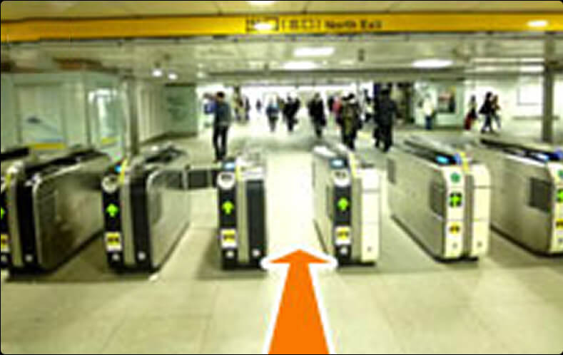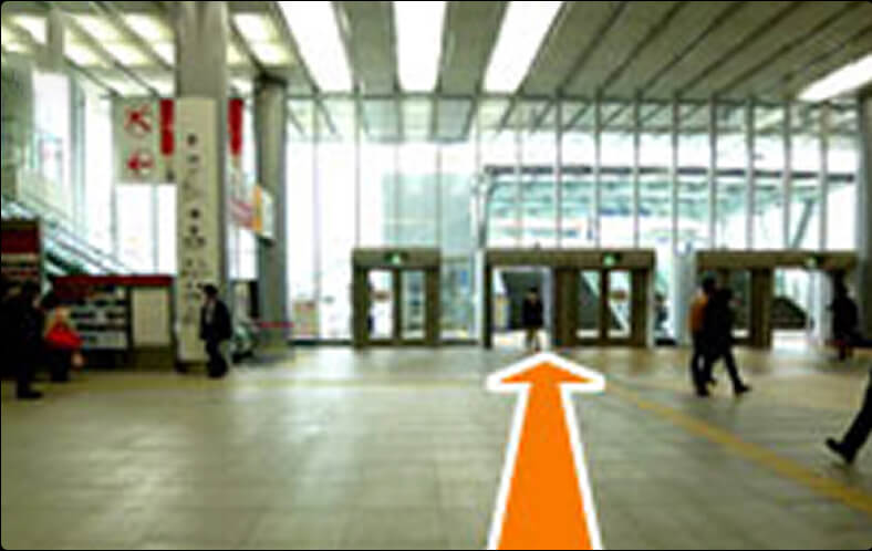 改札を出て、歩行者デッキを直進し、左側エレベーターをご利用ください。