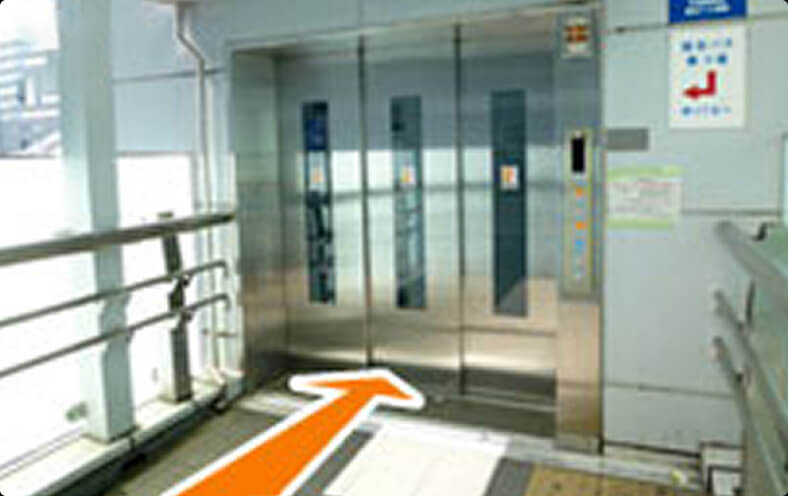 「福祉バス乗り場」の表示がある出口をご利用ください。 - エレベーターの場合:
