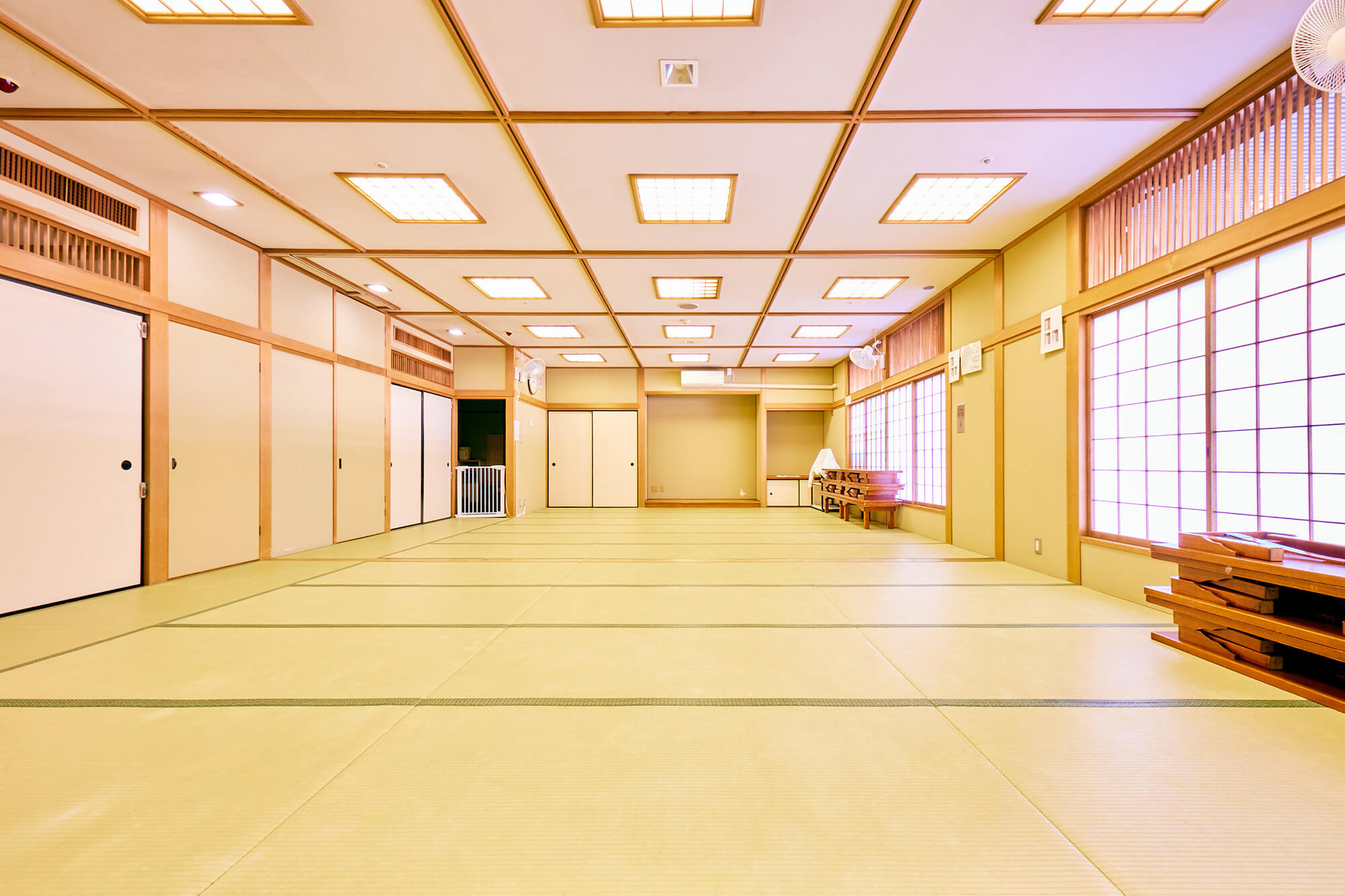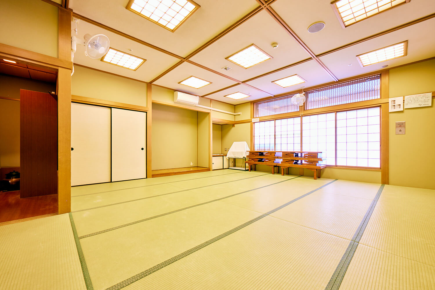 20畳の和室が2部屋。パーティションを開放すれば、40畳の大広間に。お茶や華道、着付けのお稽古からサークルの会合まで、穏やかなひとときをどうぞ。