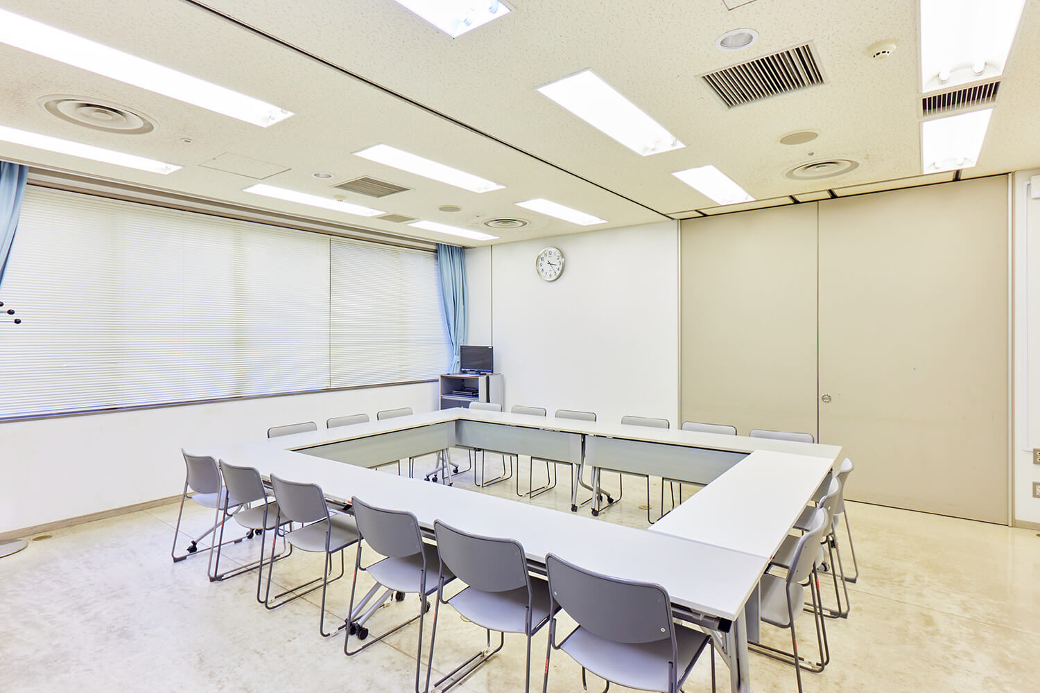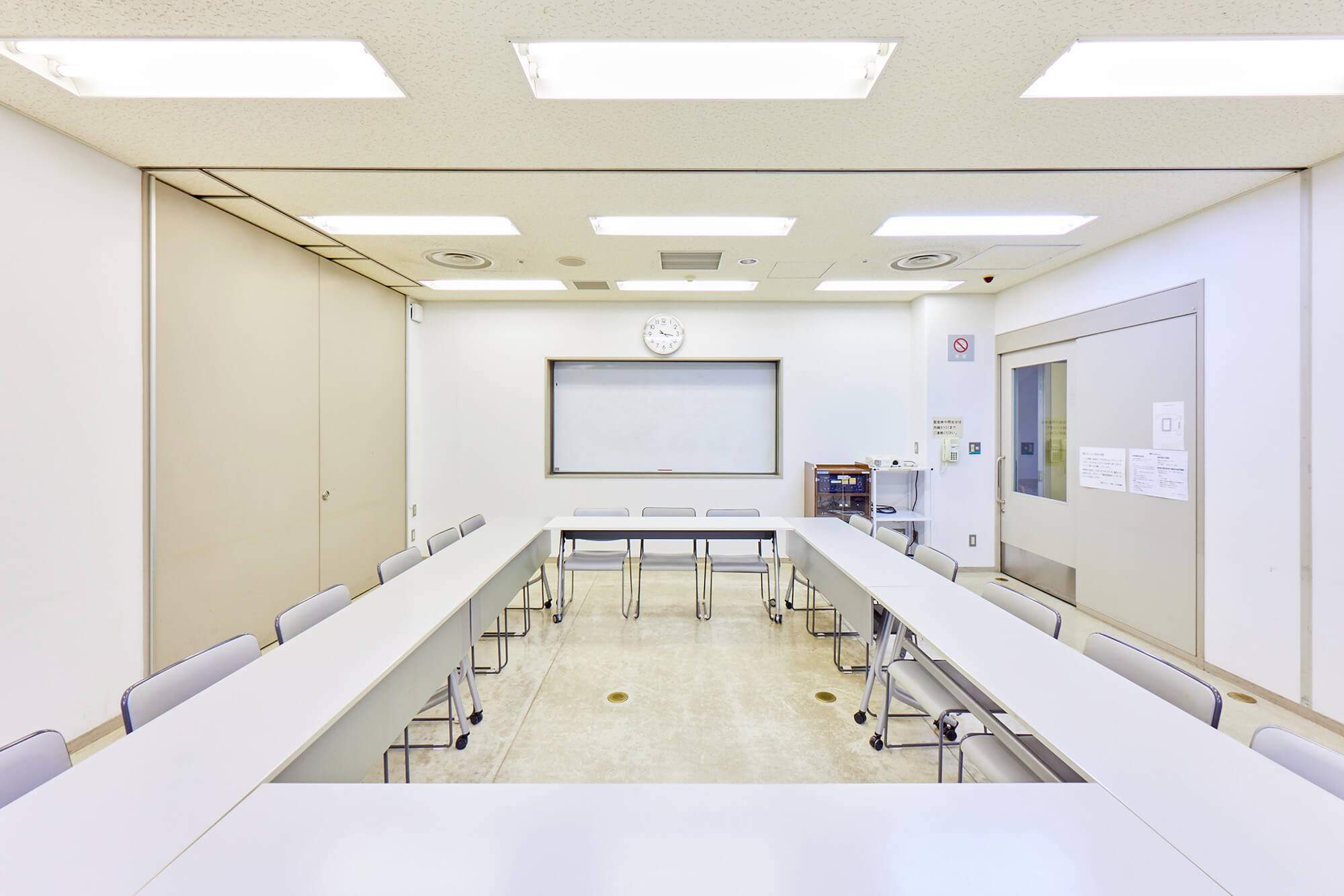 定員24名の明るく落ち着いた雰囲気の会議室です。少人数での会議や打ち合わせ、サークル活動の拠点、仲間との勉強会など、様々な集まりにご利用ください。
