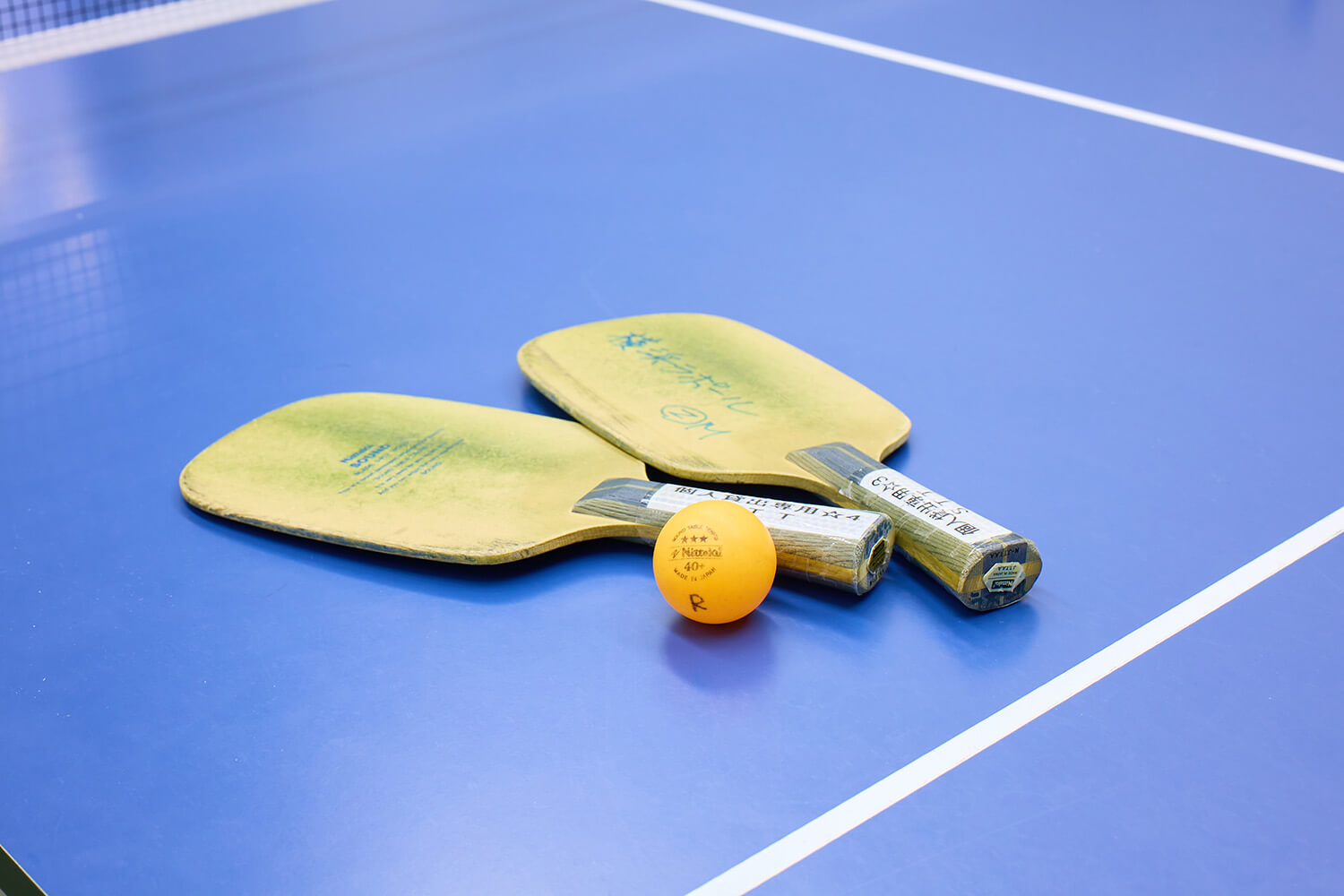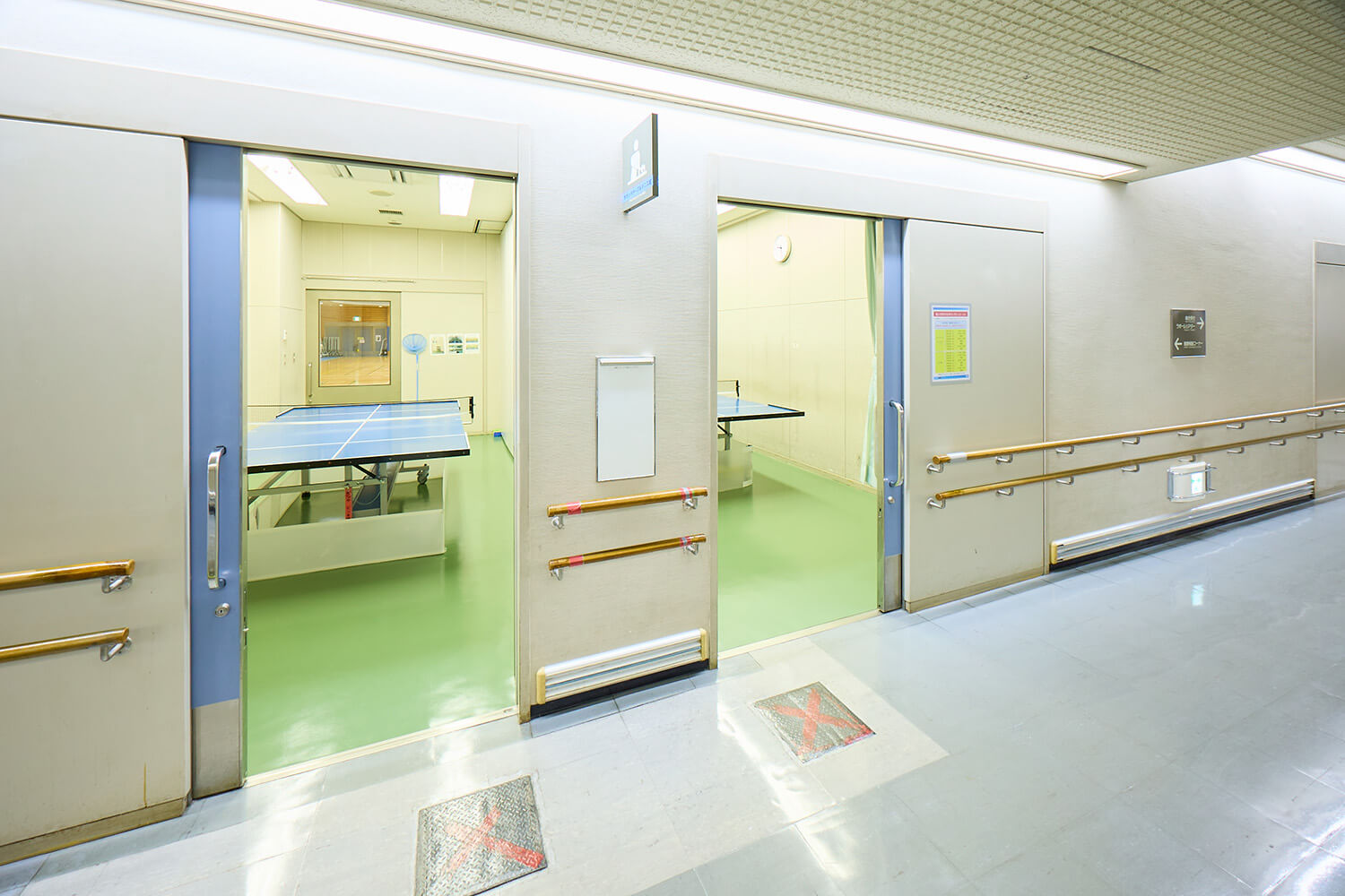 視覚障害のある方のための卓球室。音の出るボールとラバーのはっていないラケットを使用して、卓球台の上でボールを転がしあうサウンドテーブルテニスができる部屋です。